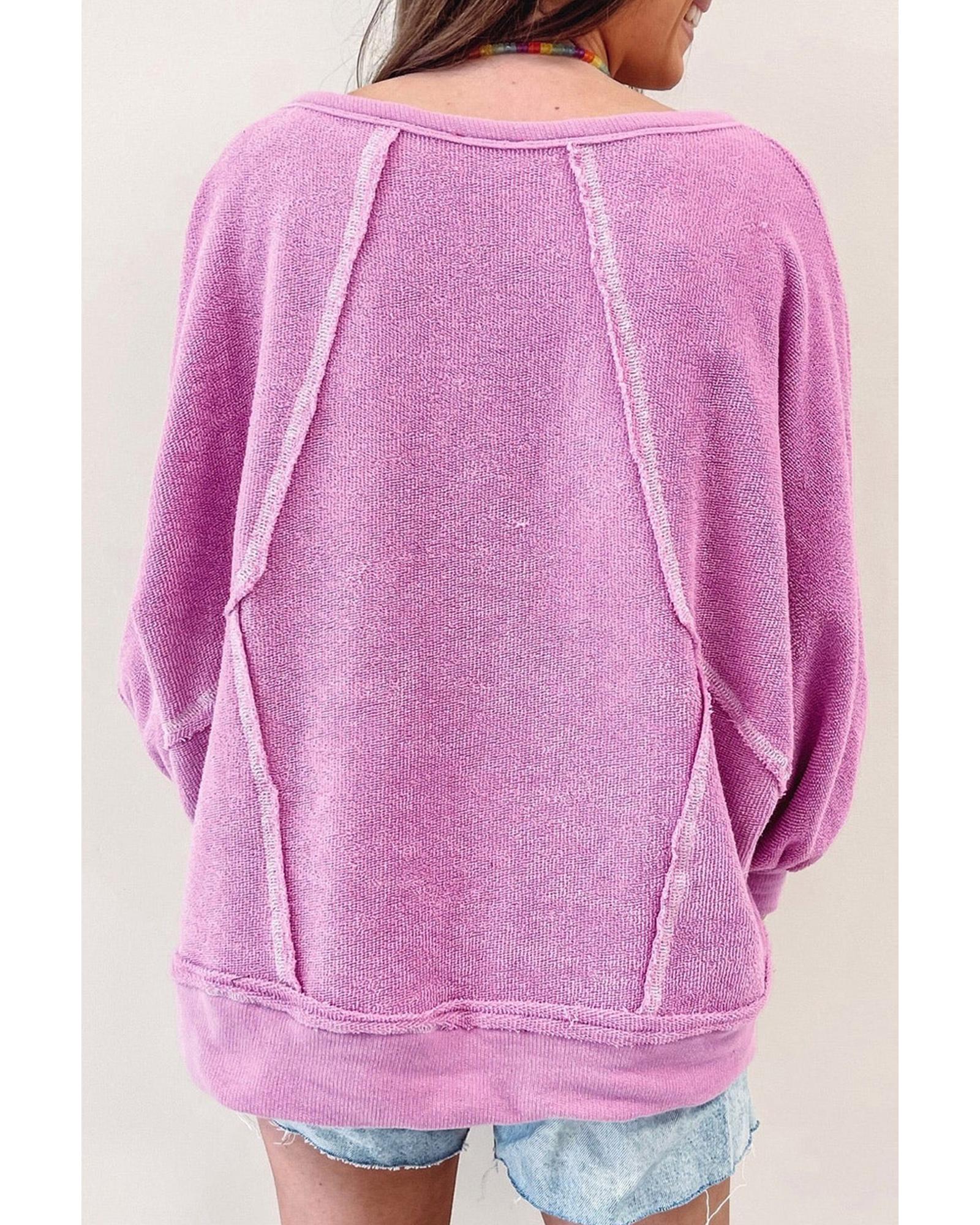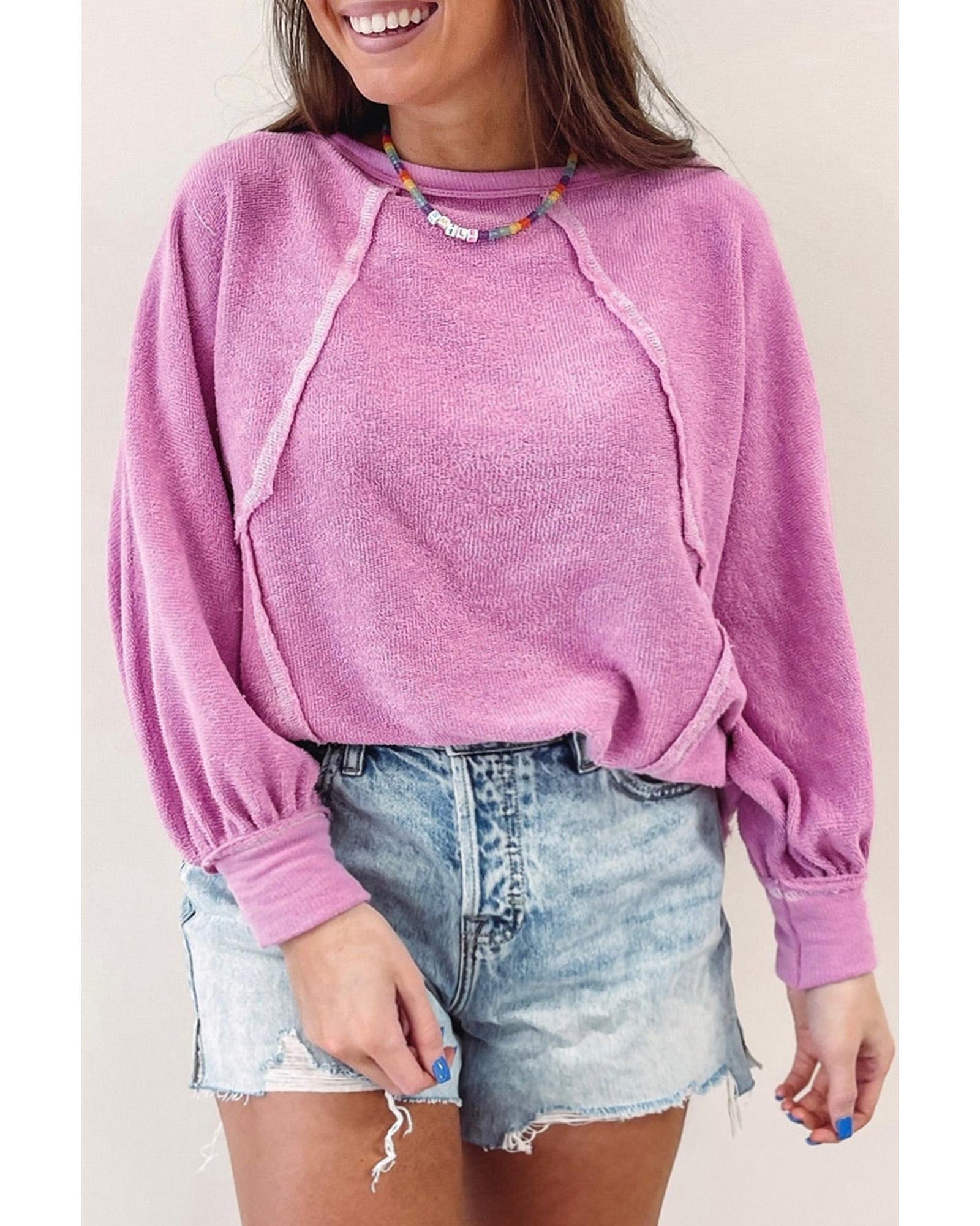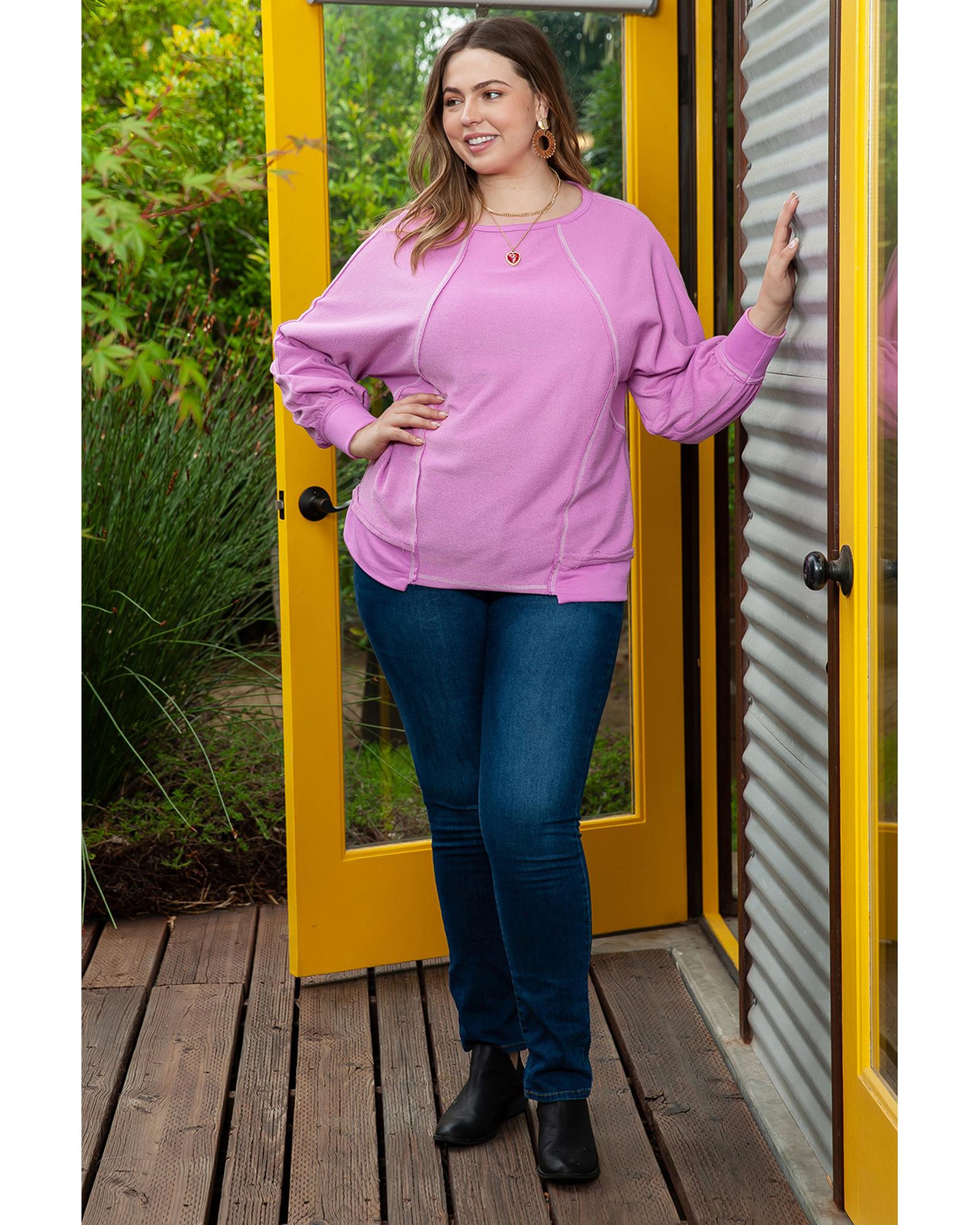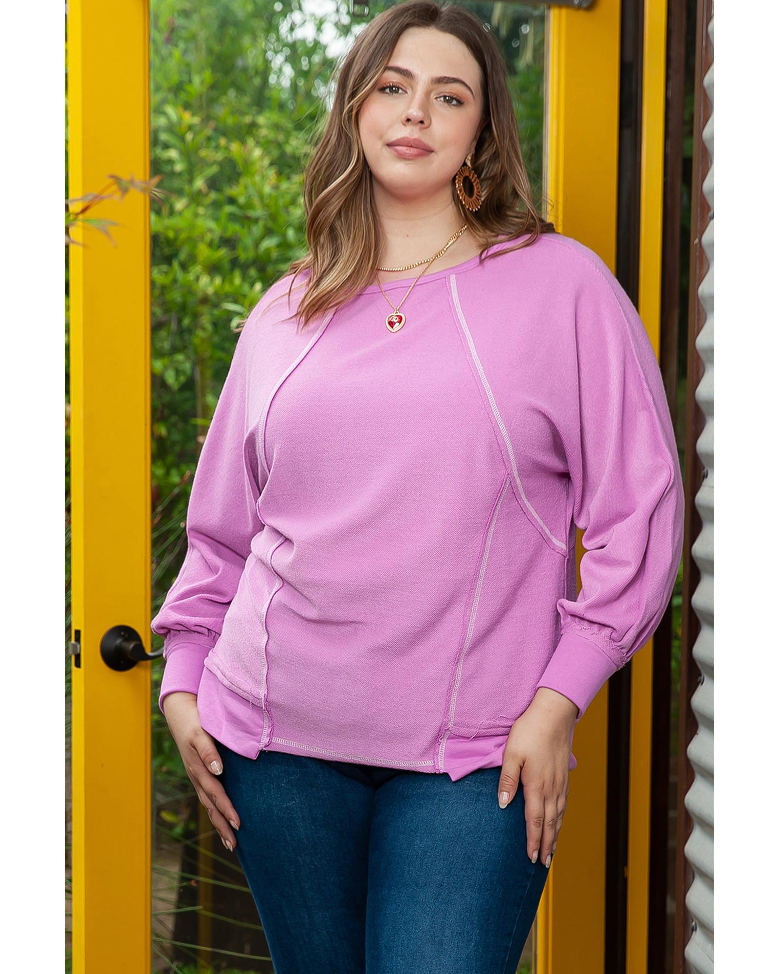 Azura Exchange Pink Plus Size Exposed Seam Terry Long Sleeve Top – 2X