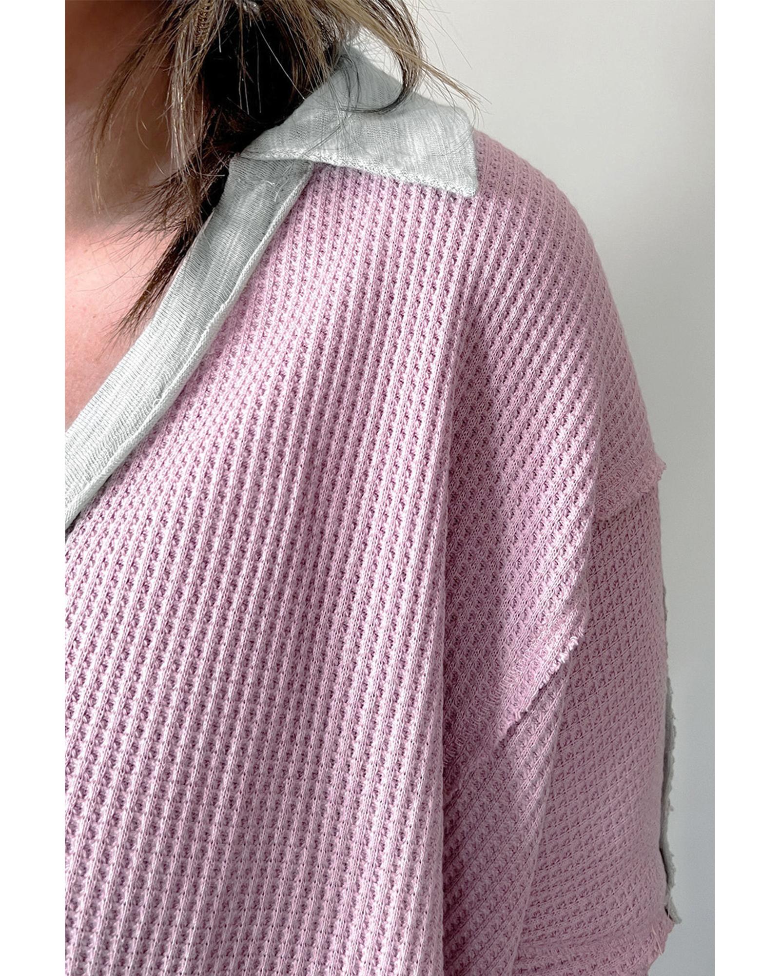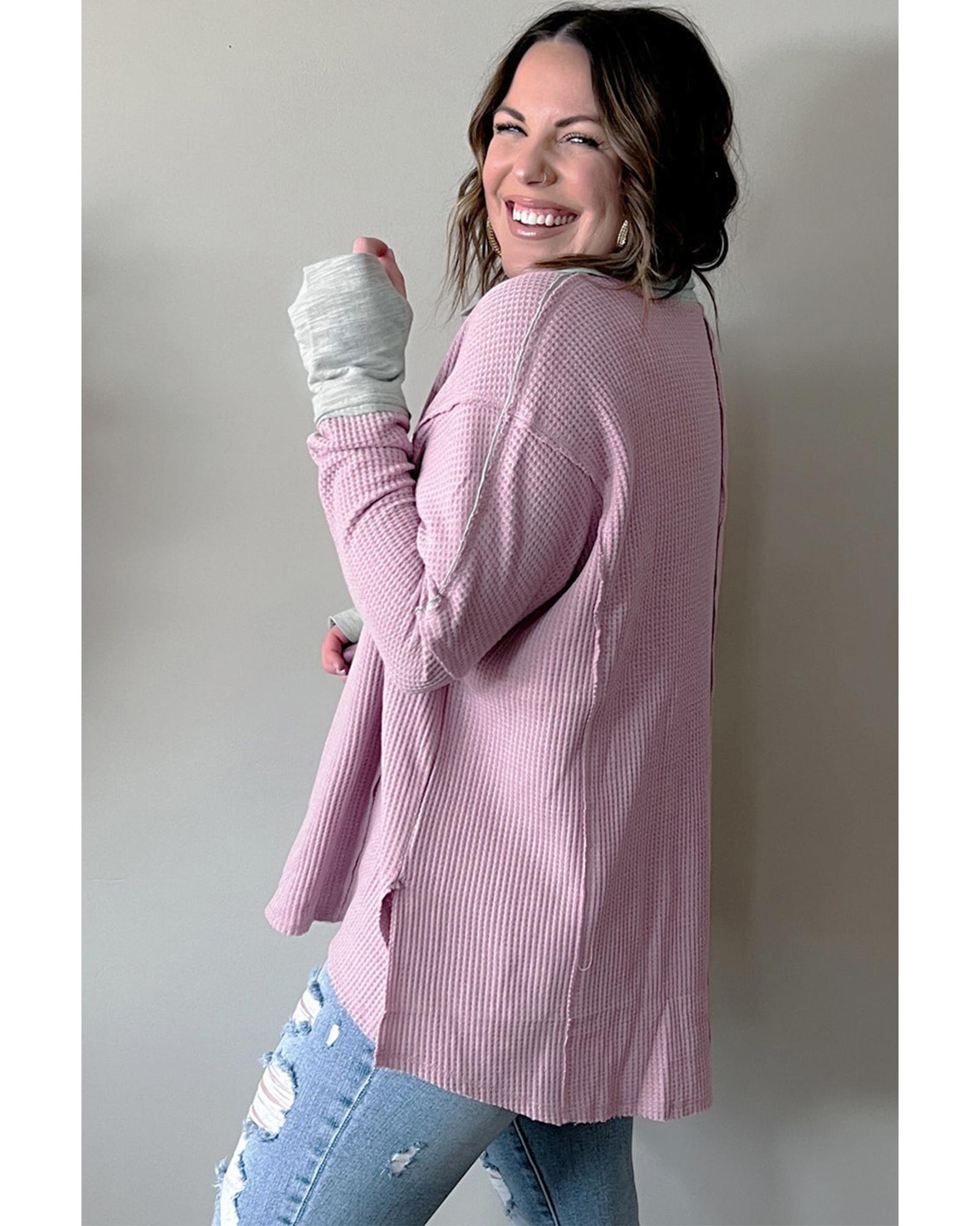 Azura Exchange Pink Plus Size Exposed Seam Waffle Knit Top - 3X Original price was: $66.99.Current price is: $35.99.