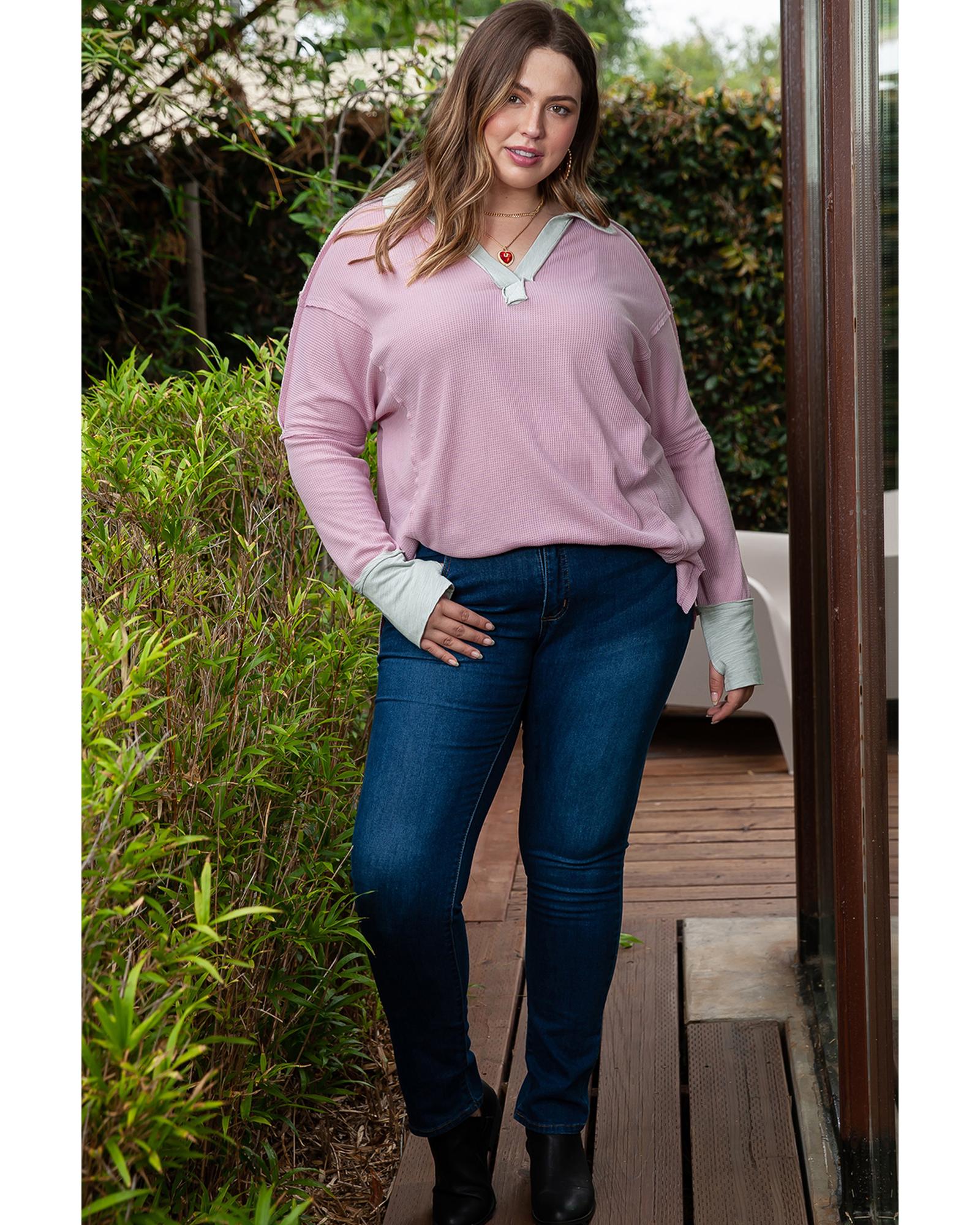 Azura Exchange Pink Plus Size Exposed Seam Waffle Knit Top - 1X Original price was: $66.99.Current price is: $35.99.