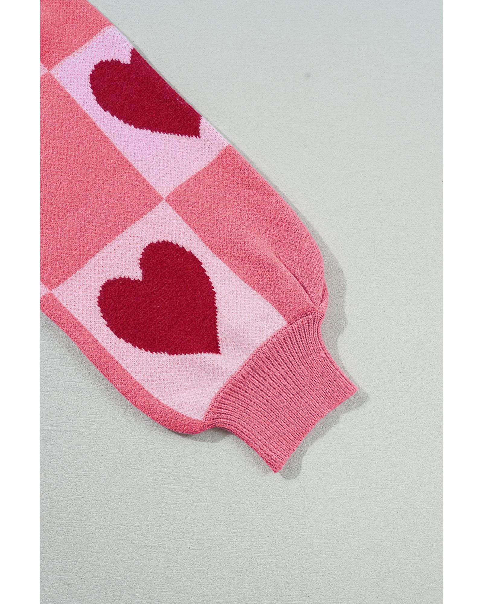 Azura Exchange Pink Plus Size Love Heart Block Mock Neck Lantern Sleeve Valentine Sweater – 2X