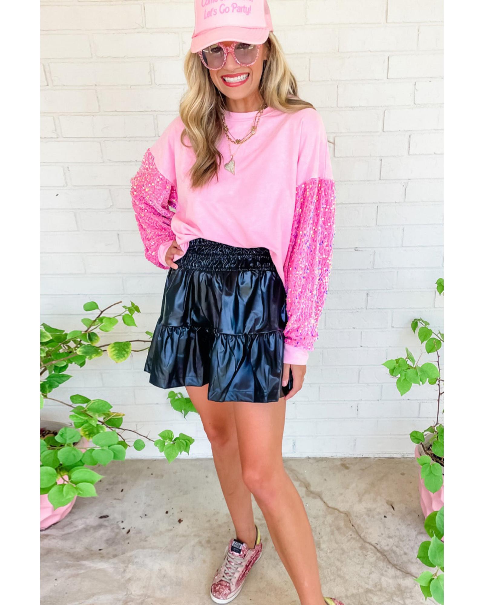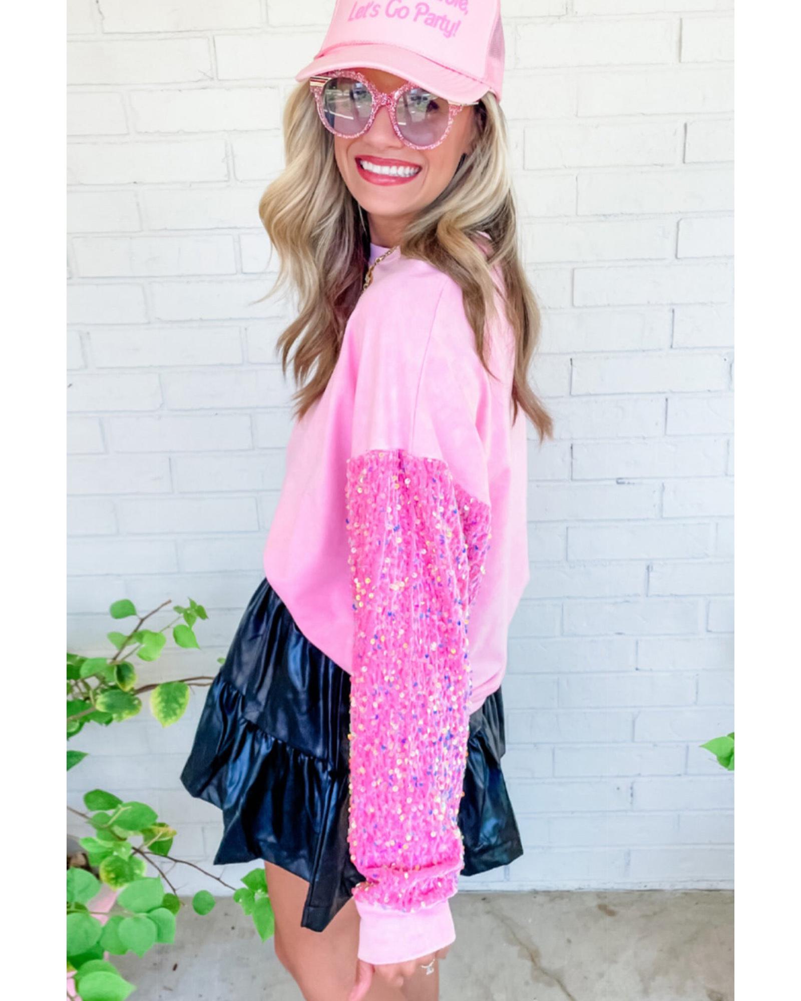 Azura Exchange Pink Sequin Patchwork Long Sleeve Pullover Top – M