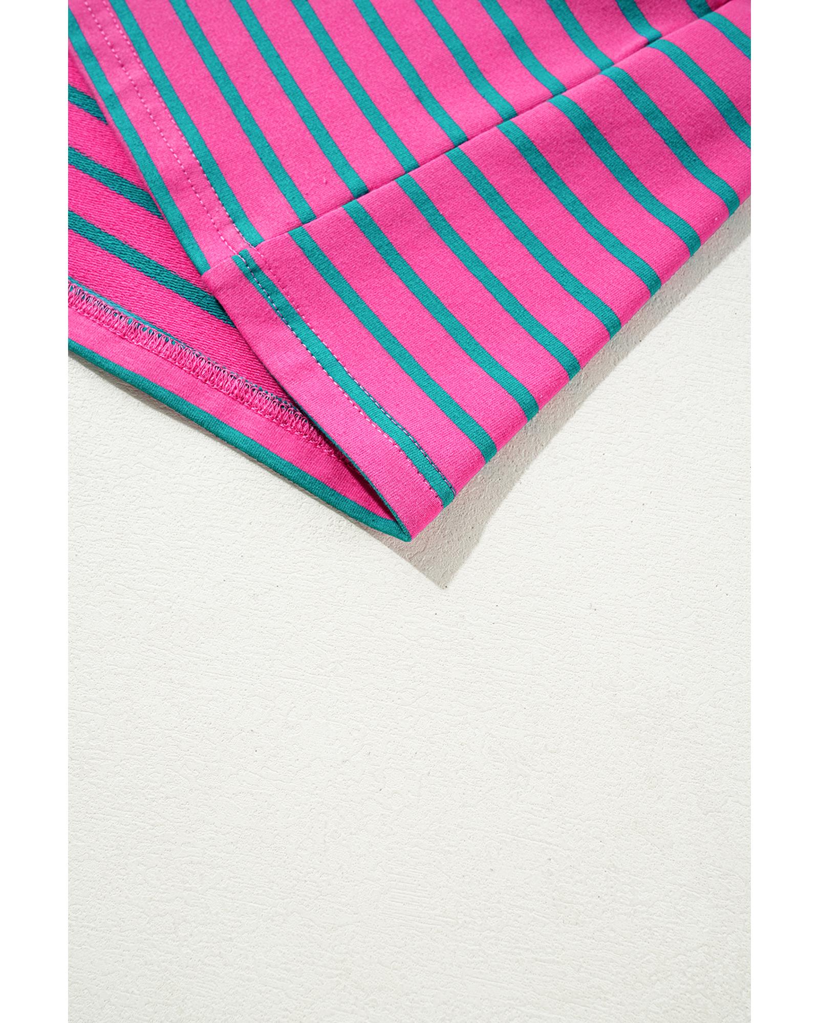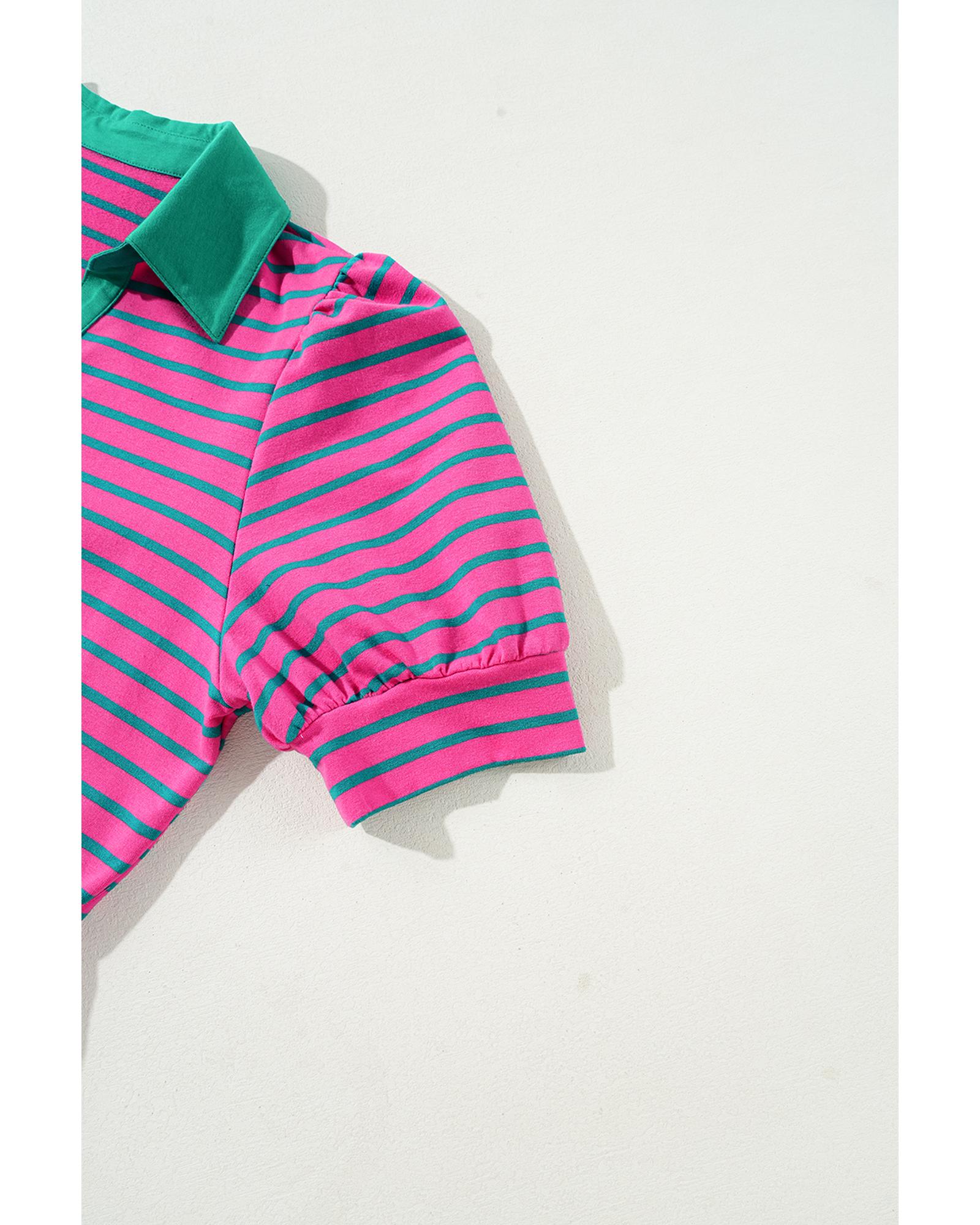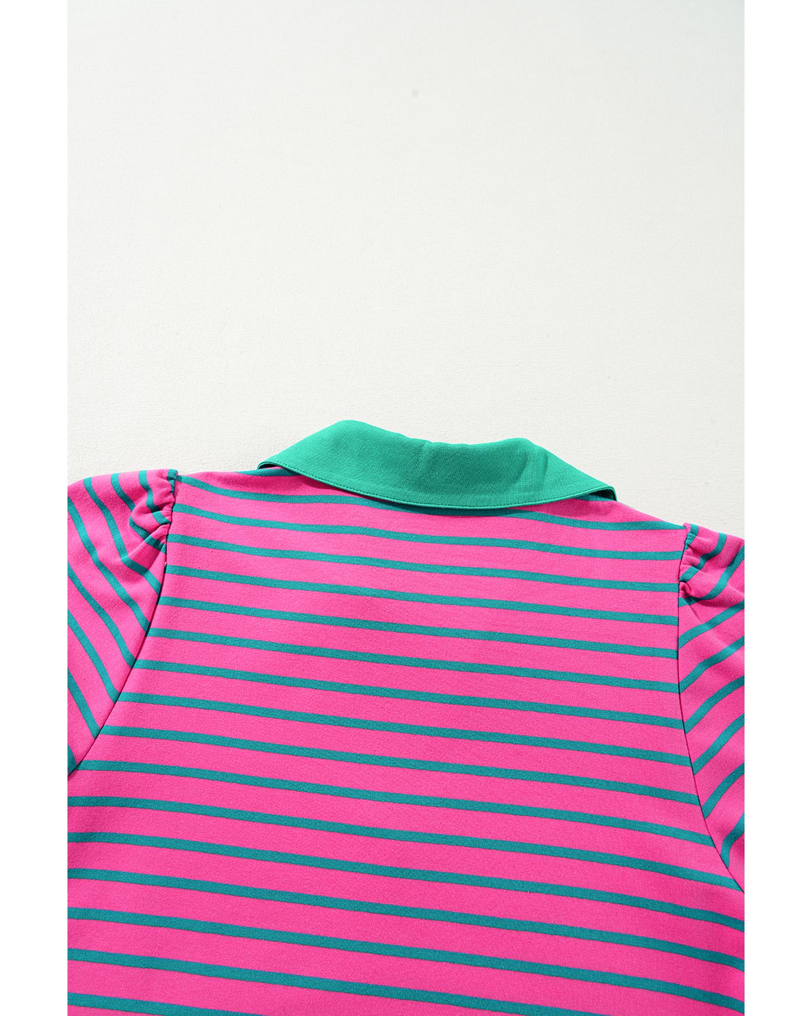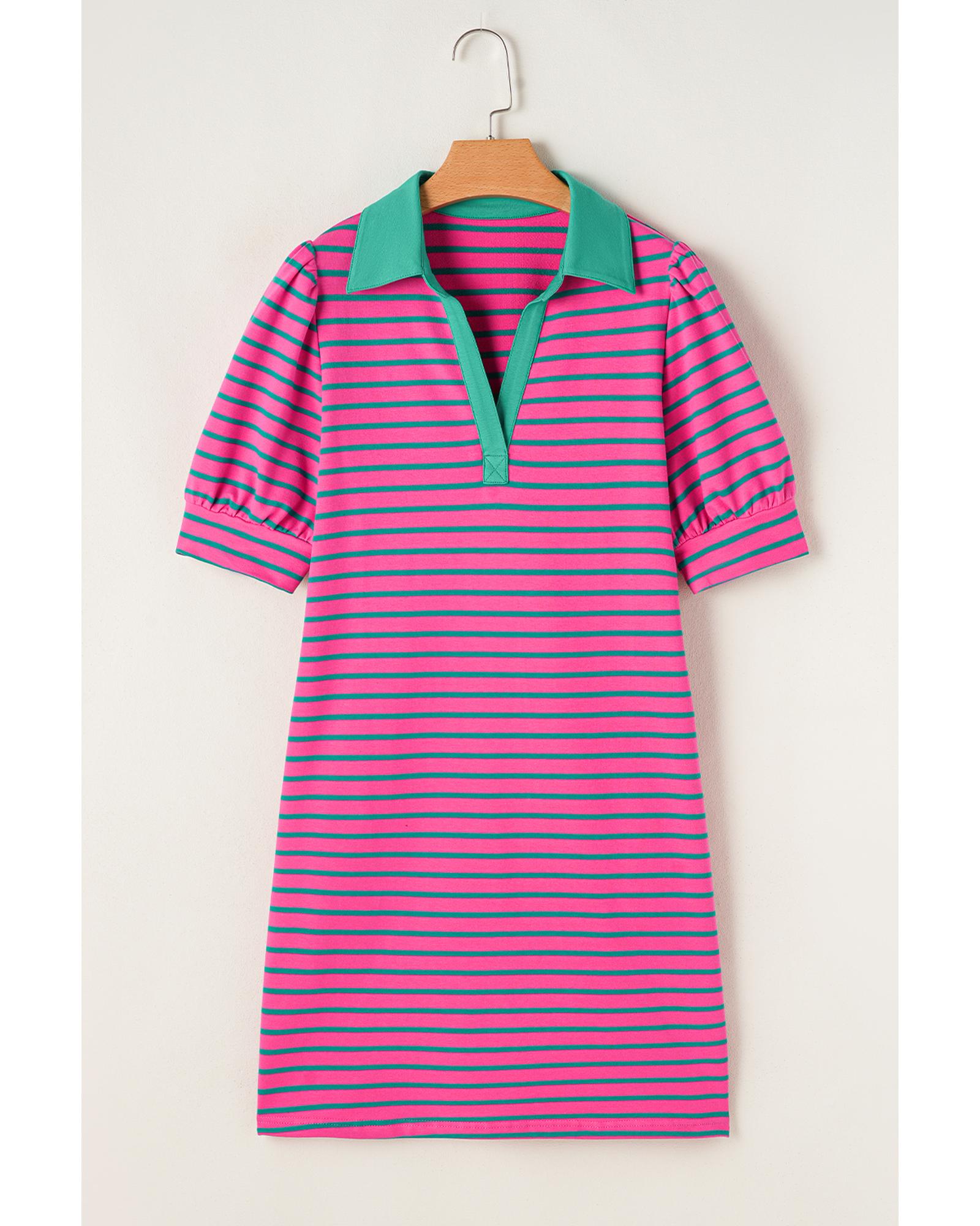 Azura Exchange Pink Stripe Collared V Neck Puff Sleeve T Shirt Dress – XL