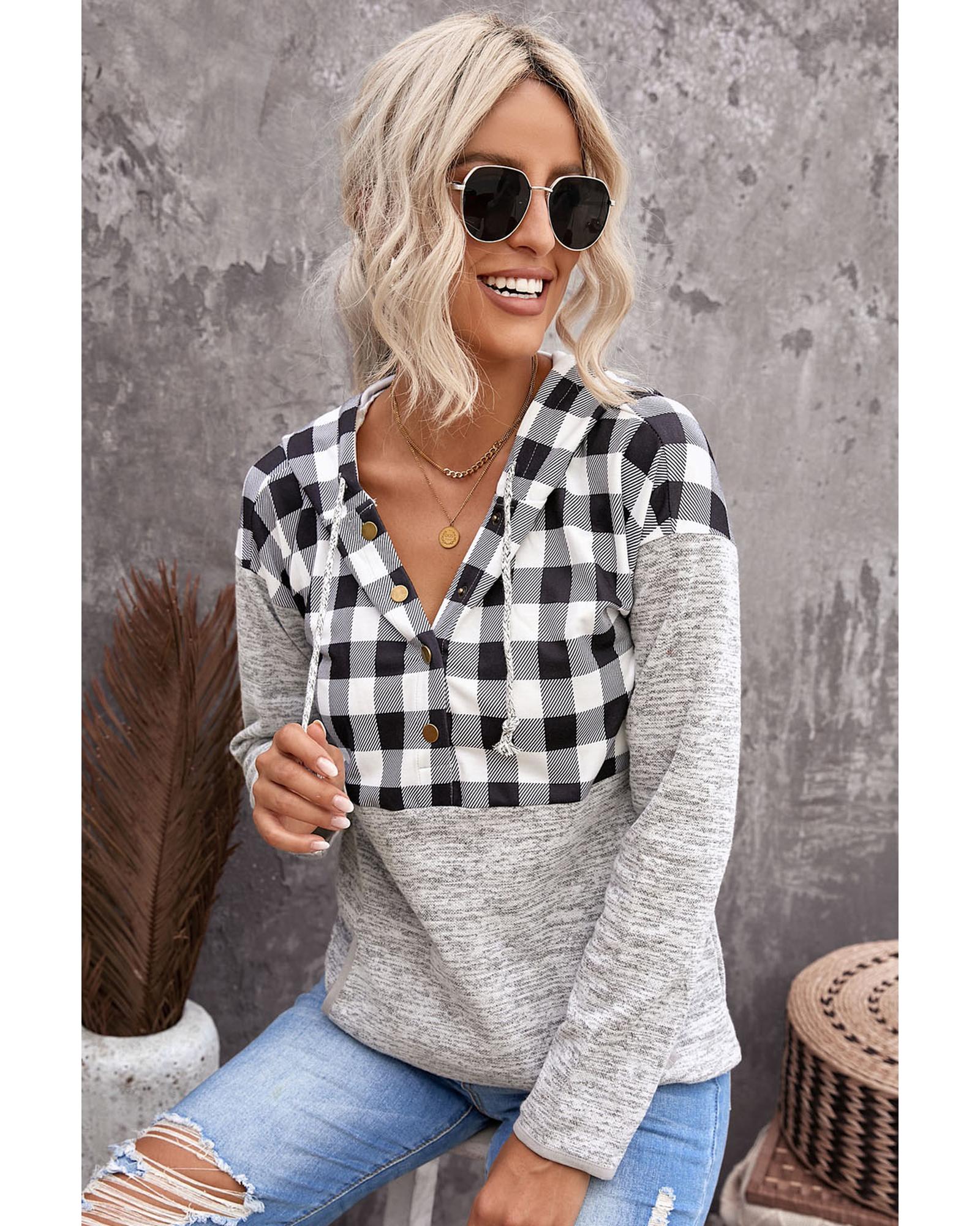 Azura Exchange Plaid Hoodie with Pocket Detailing – S