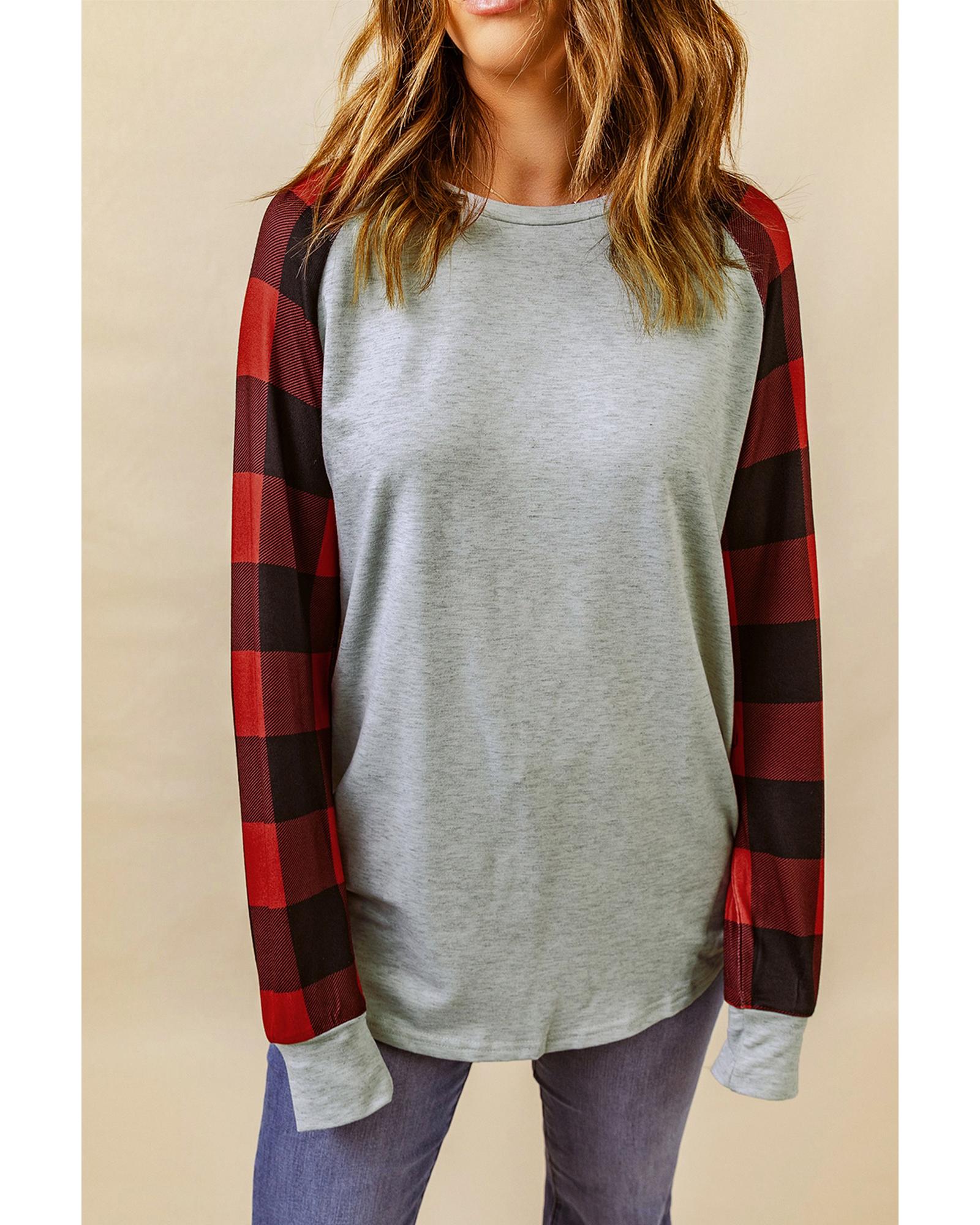 This long sleeve sweatshirt features a stylish buffalo plaid pattern, combining comfort and fashion for everyday wear. Made from a soft and stretchy blend of polyester and spandex, it offers a comfortable fit and a trendy look. Perfect for casual occasions, it can be paired easily with jeans or leggings, providing warmth with its long sleeves.