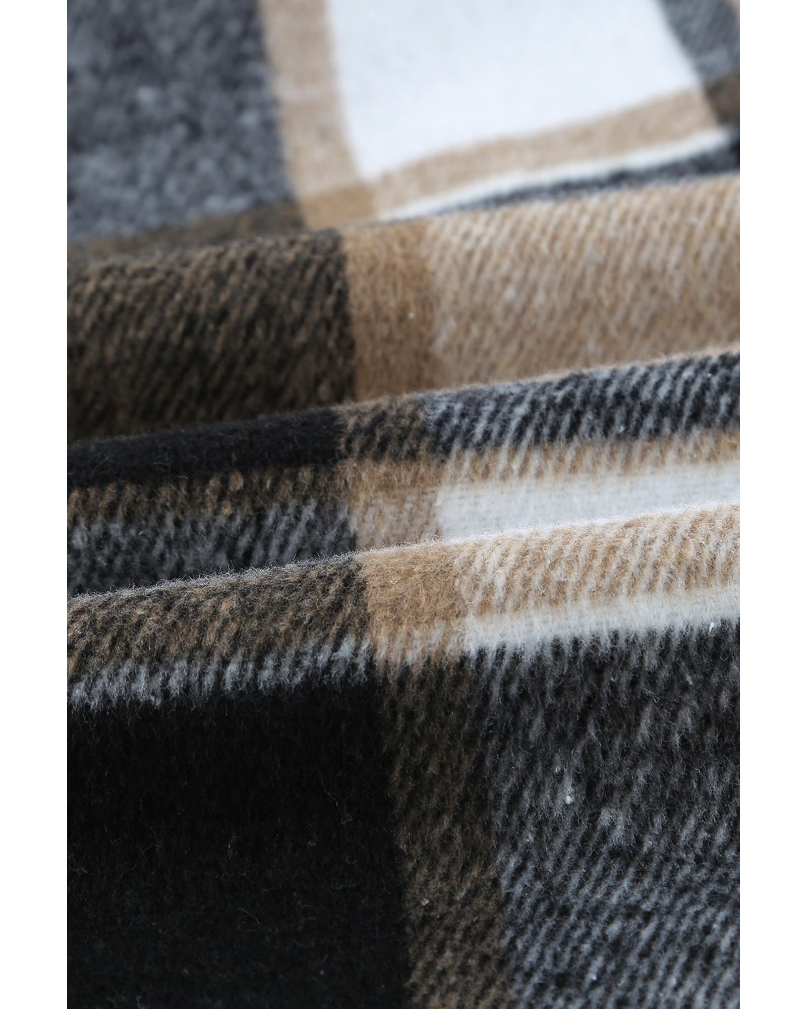 This plaid print buttoned shirt jacket is a stylish and versatile piece designed for women. It features a buttoned closure that ensures a secure and comfortable fit, making it suitable for various occasions. Crafted from high-quality materials, it offers durability and long-lasting wear.