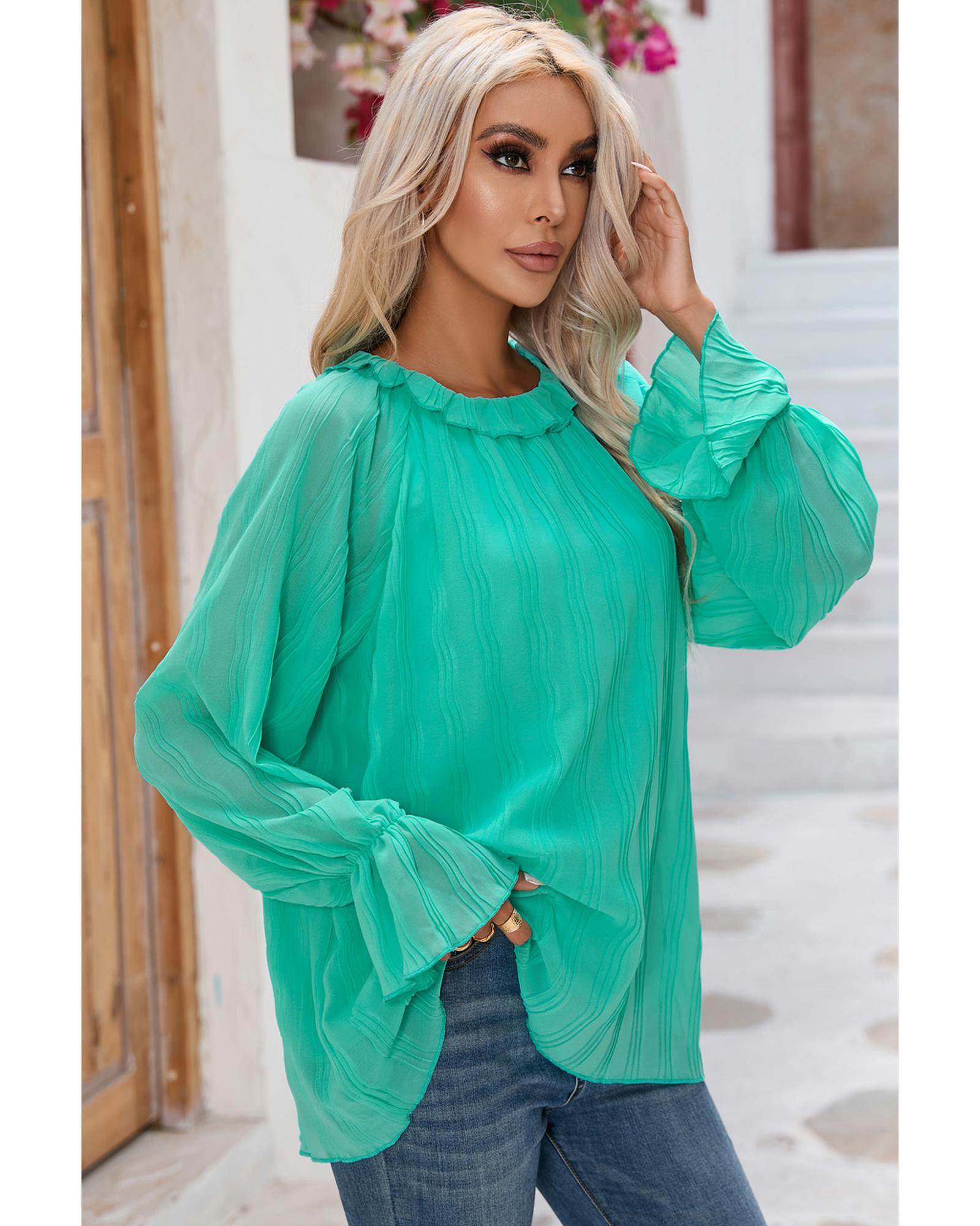This long sleeve blouse features a luxurious pleated flared cuff design that adds a touch of elegance to any outfit. Its sophisticated style makes it suitable for both formal and casual occasions, making it a versatile addition to your wardrobe. Crafted from high-quality materials, it offers a comfortable and flattering fit.