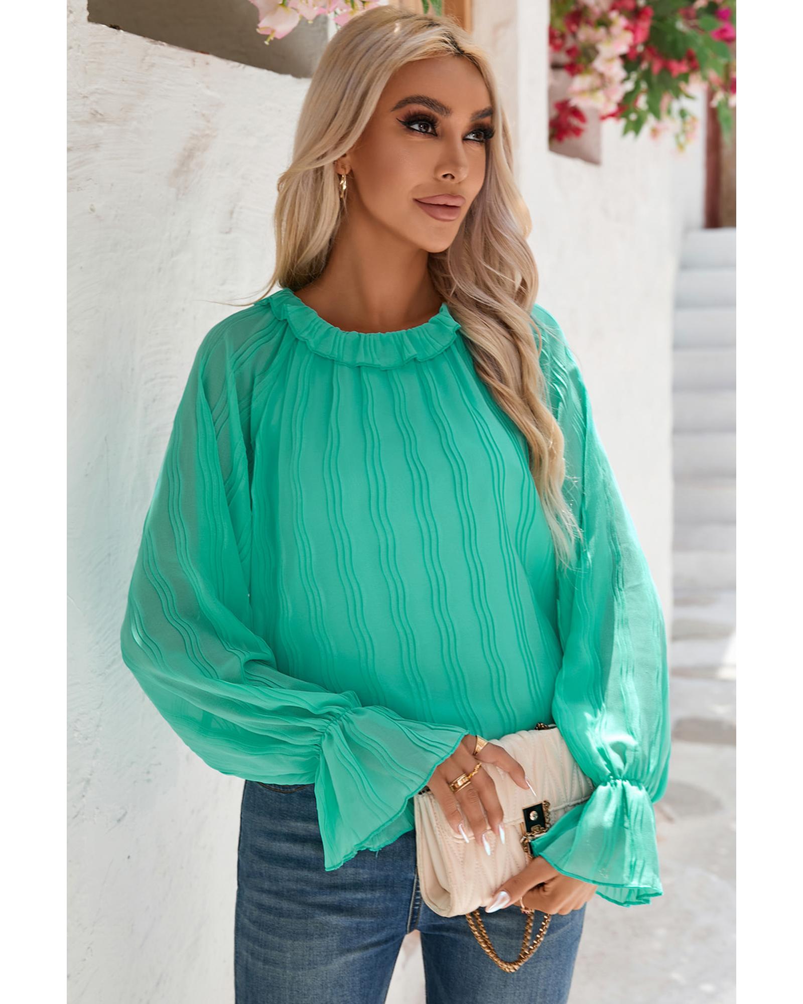 Azura Exchange Pleated Flared Cuff Long Sleeve Blouse – S