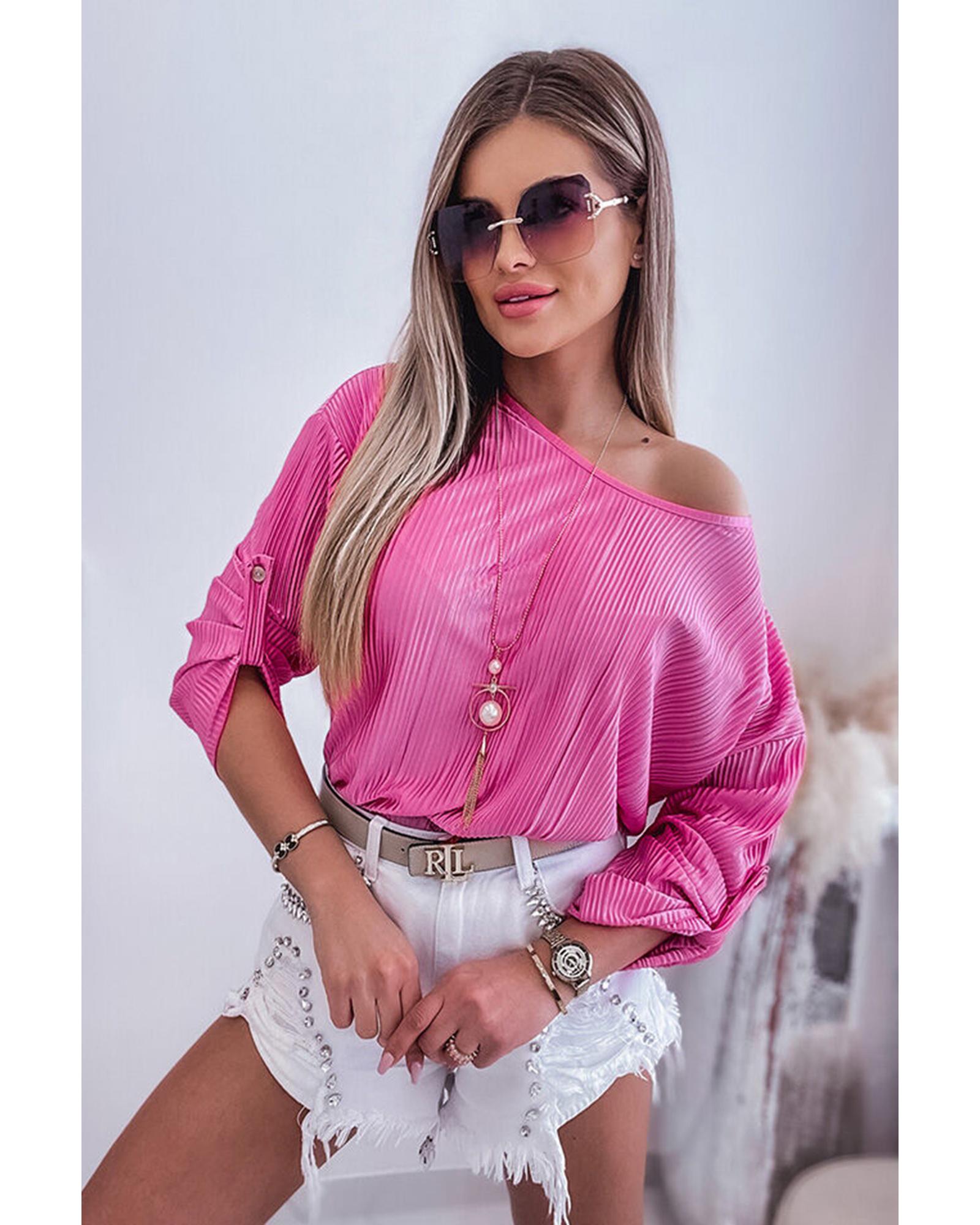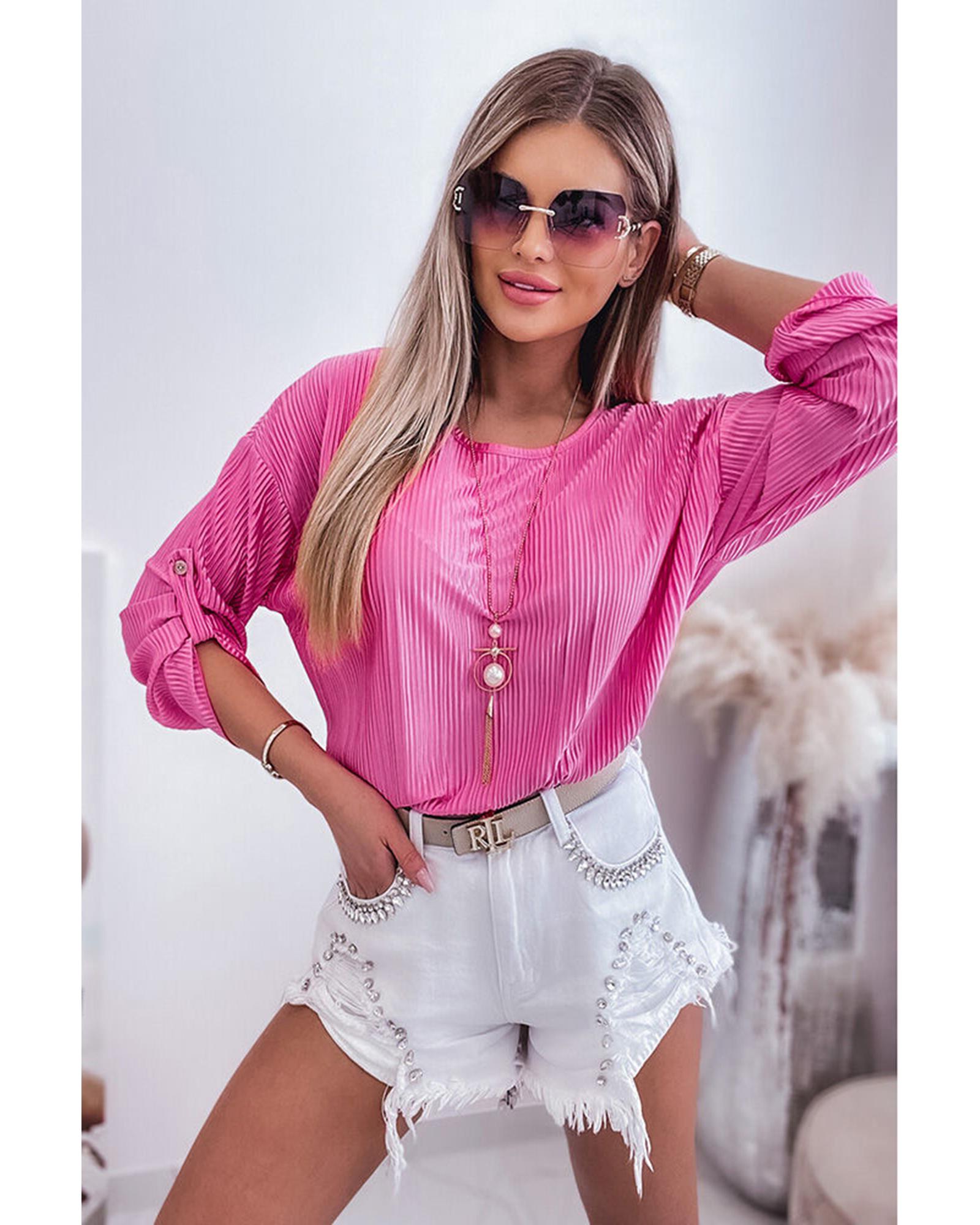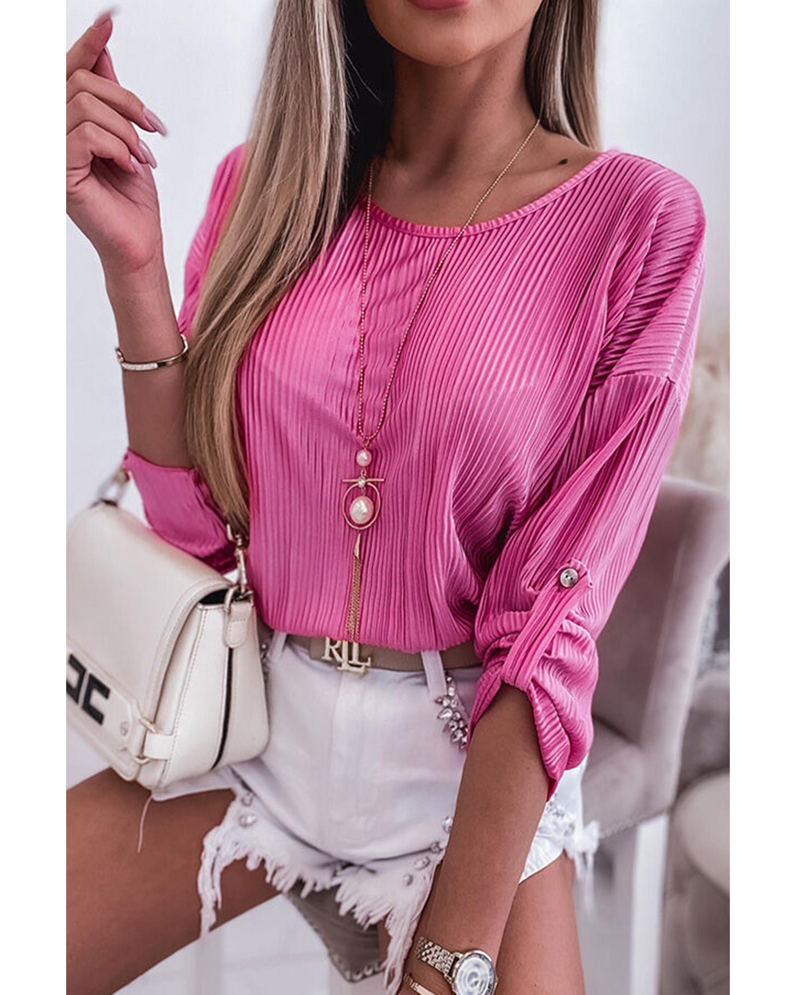 Azura Exchange Pleated Texture Roll Tab Sleeve Blouse – S