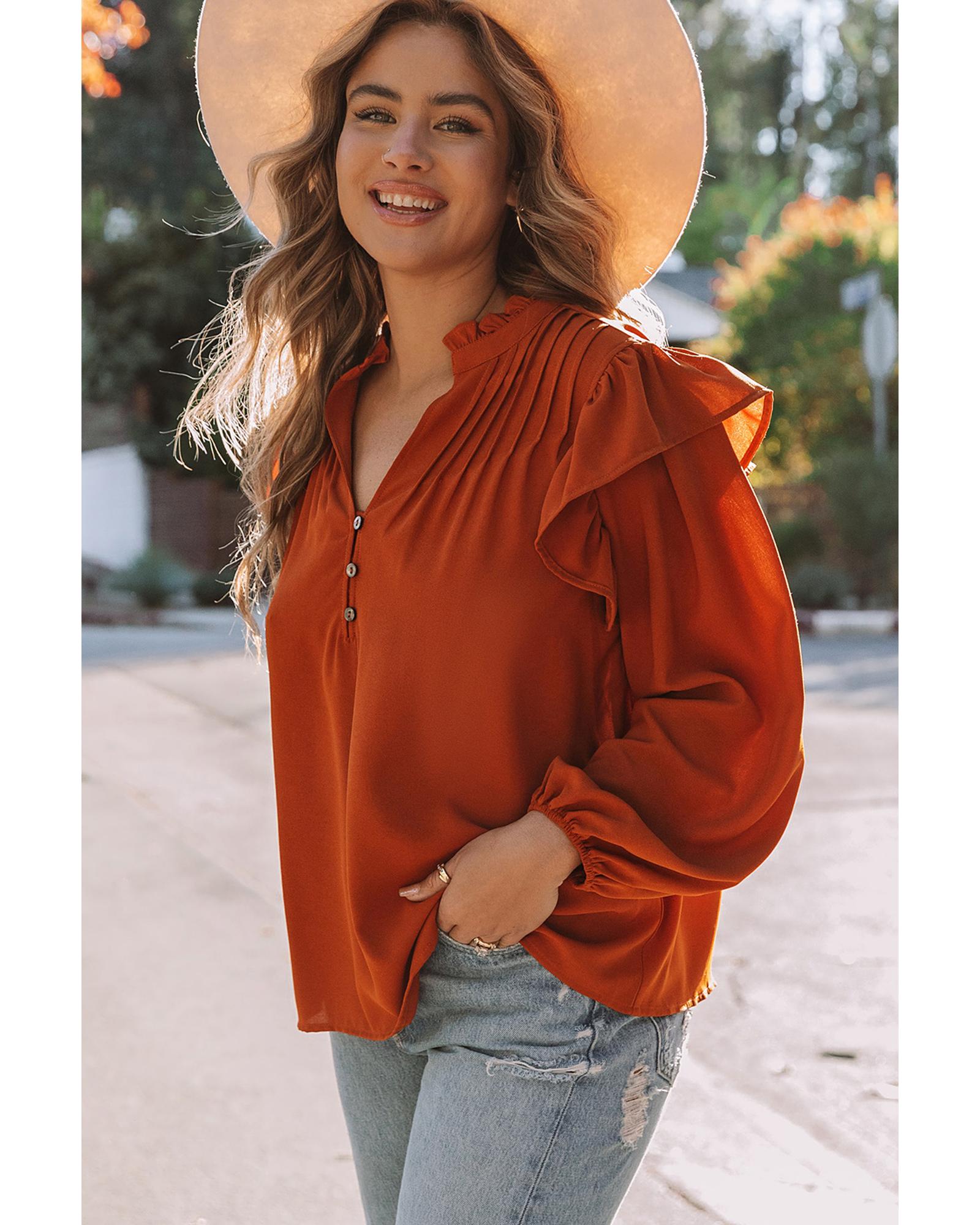 This luxurious blouse for women features a stylish pleated design and a flattering V-neckline, creating an elegant and feminine silhouette. It is suitable for both formal and casual occasions, making it a versatile addition to any wardrobe.