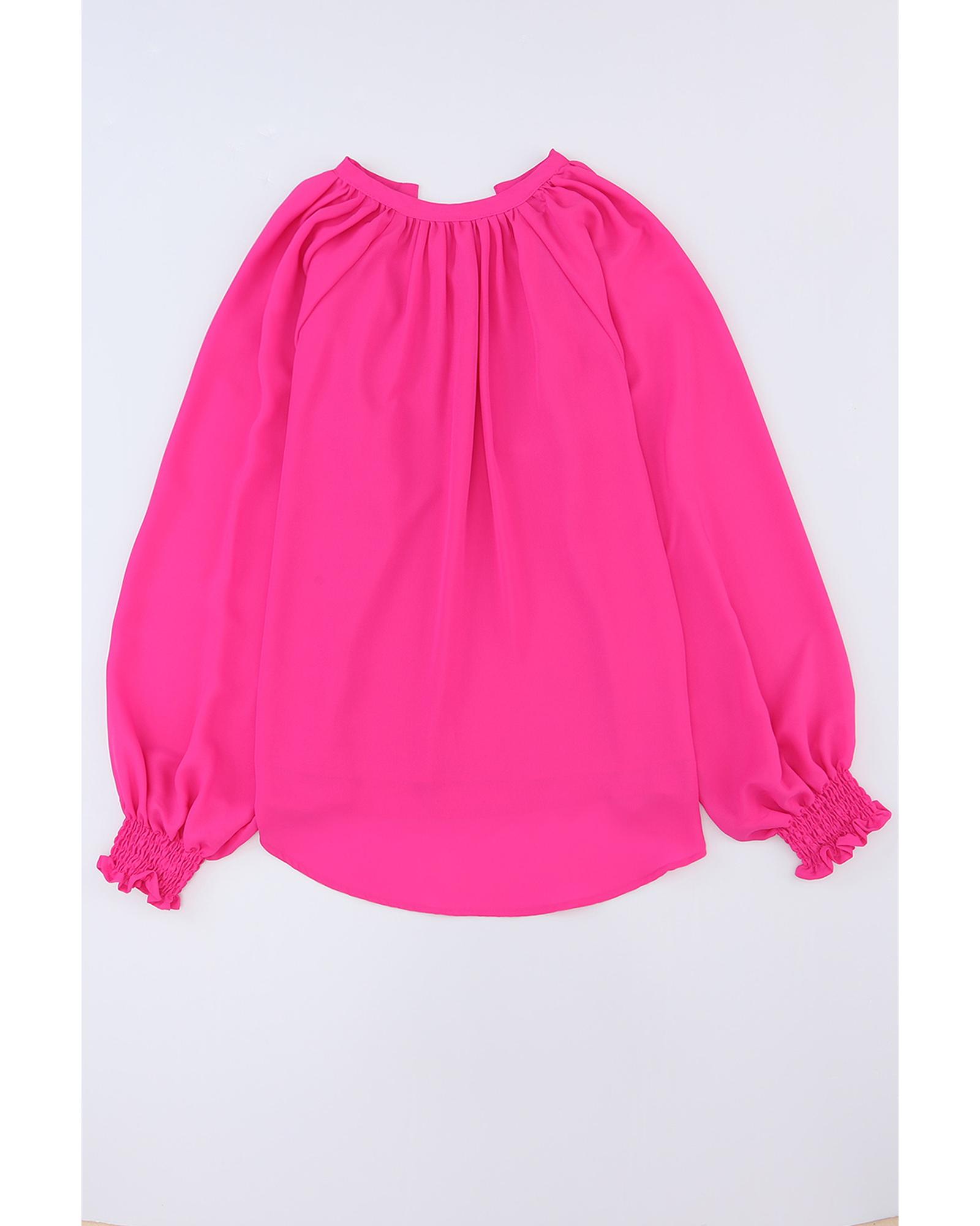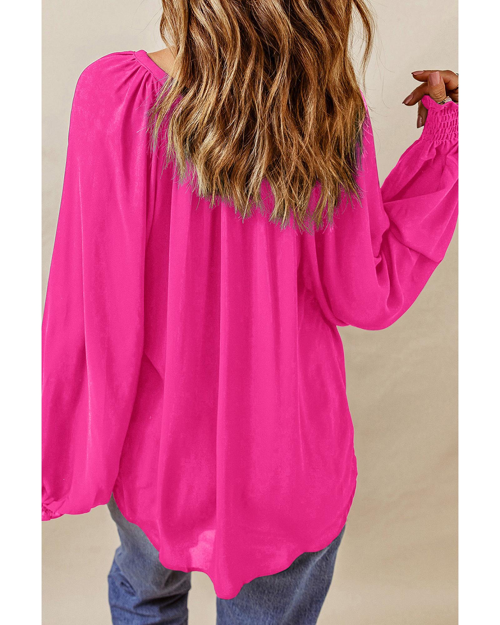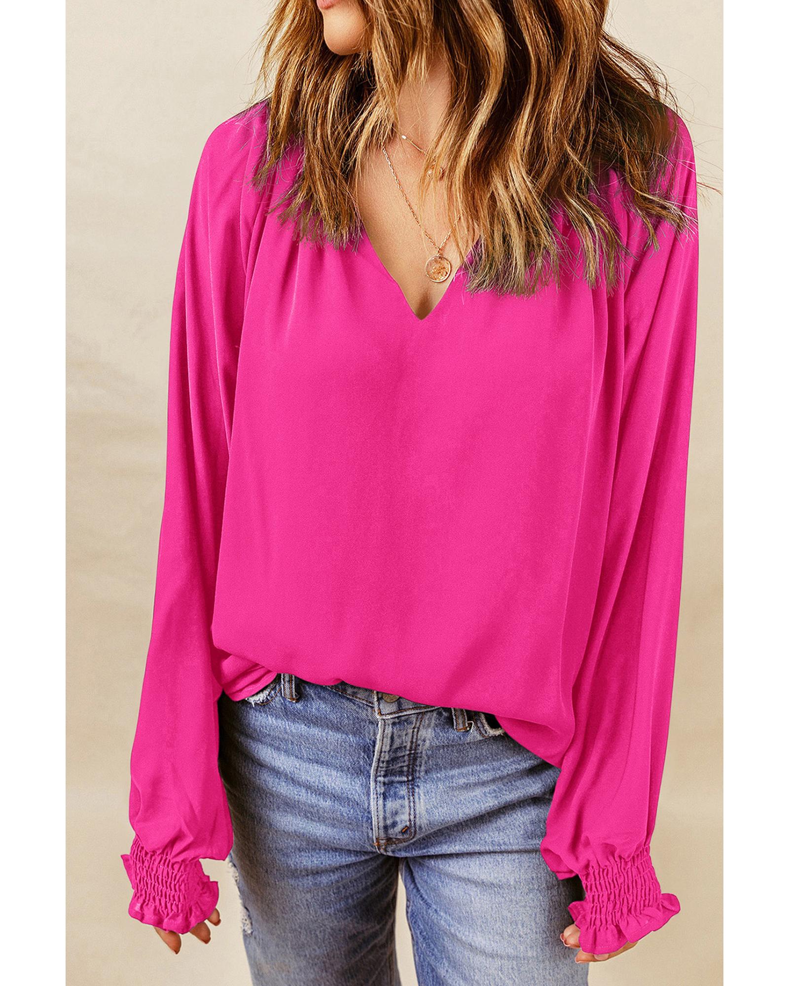 Azura Exchange Pleated V Neck Puffy Sleeve Blouse – XL