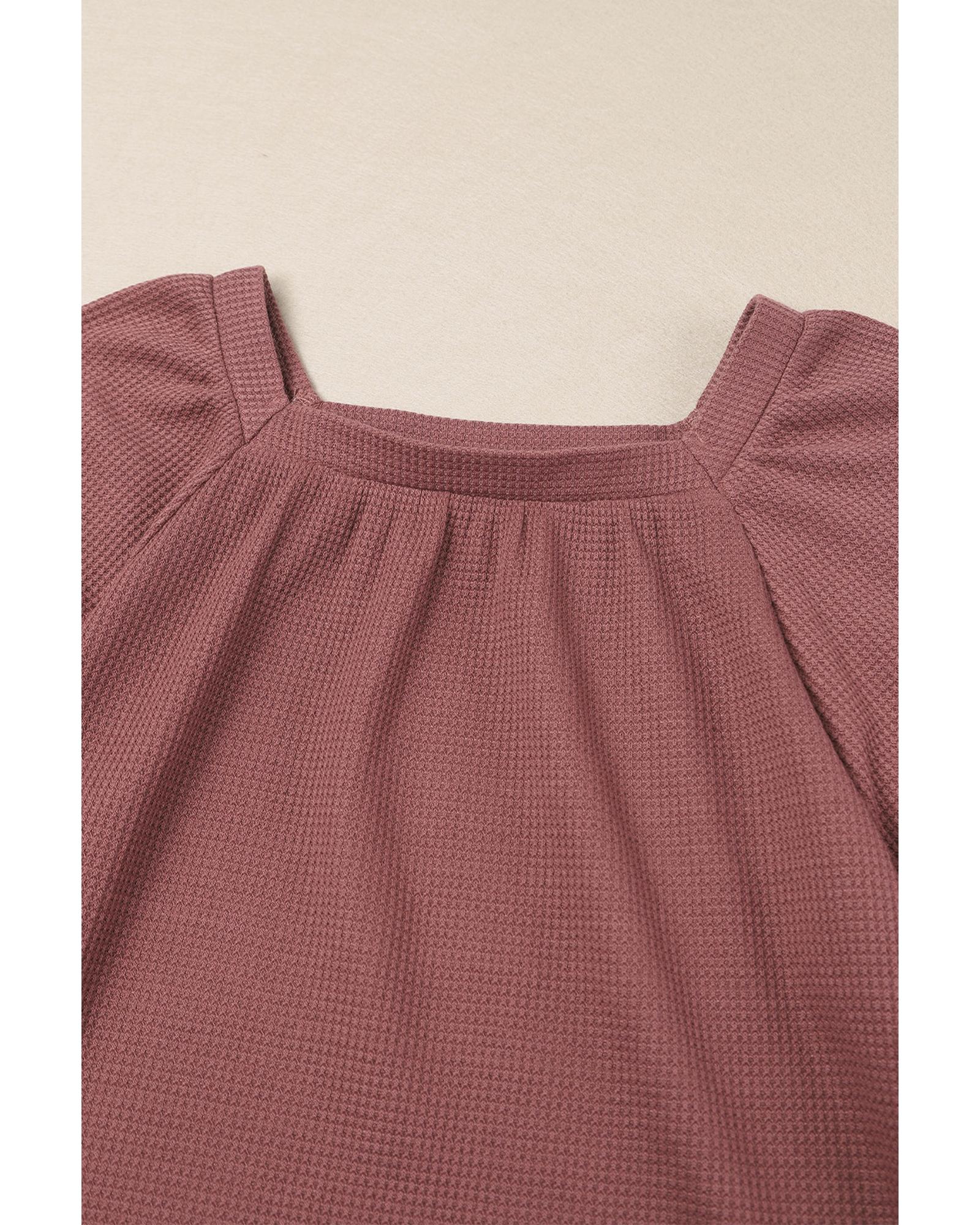 This puff sleeve waffle knit top features a stylish square neckline and trendy puff sleeves, making it a versatile addition to any wardrobe. Crafted from a comfortable waffle knit fabric, it offers both style and comfort for everyday wear.
