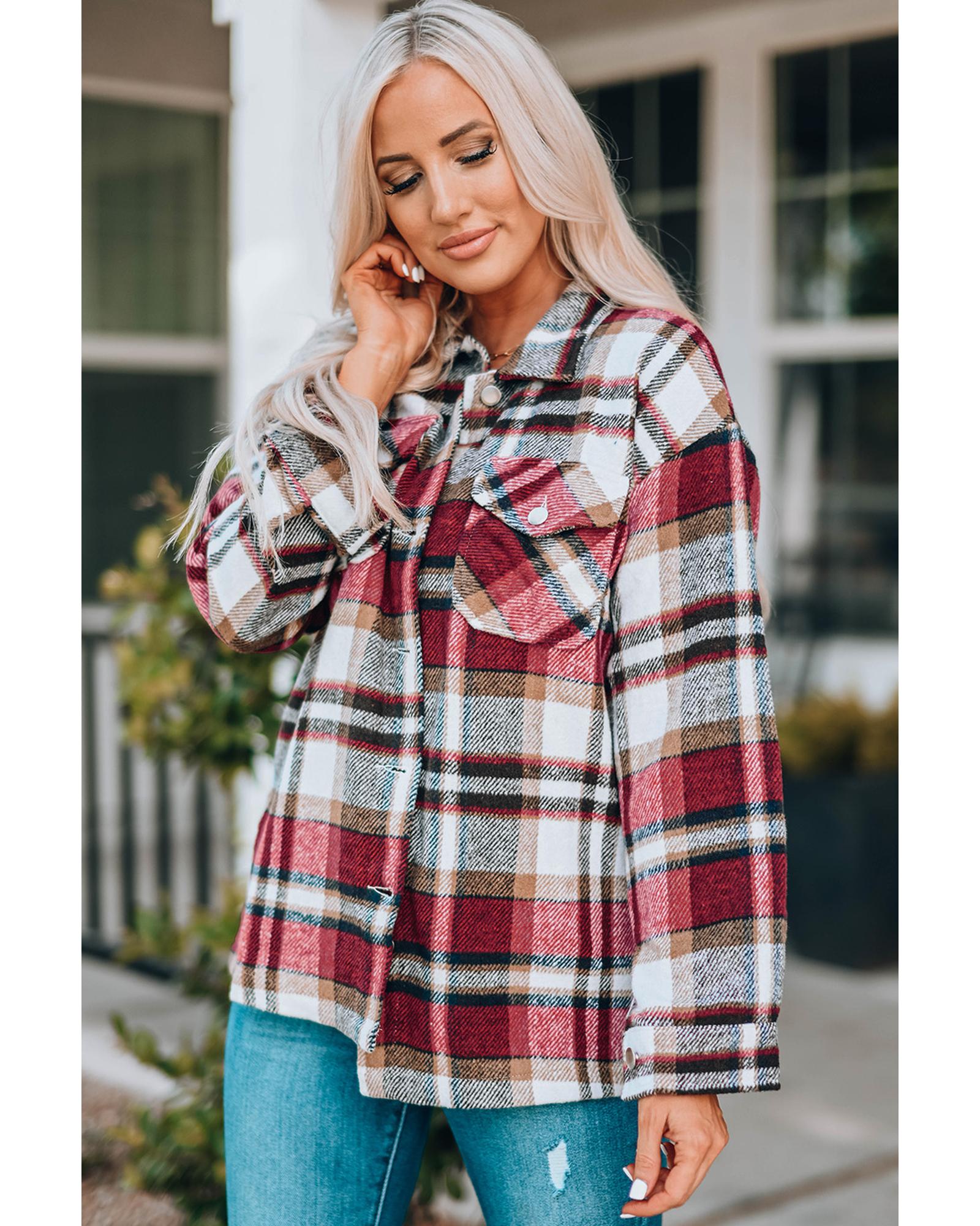 Azura Exchange Red Geometric Plaid Print Pocketed Shacket – M
