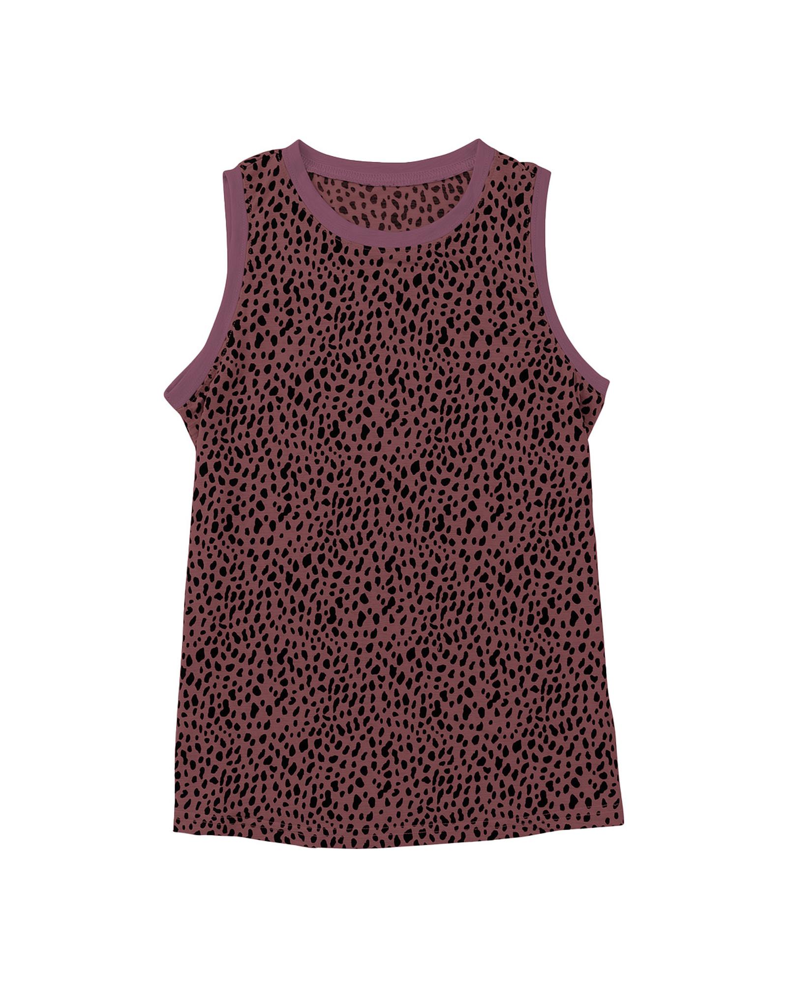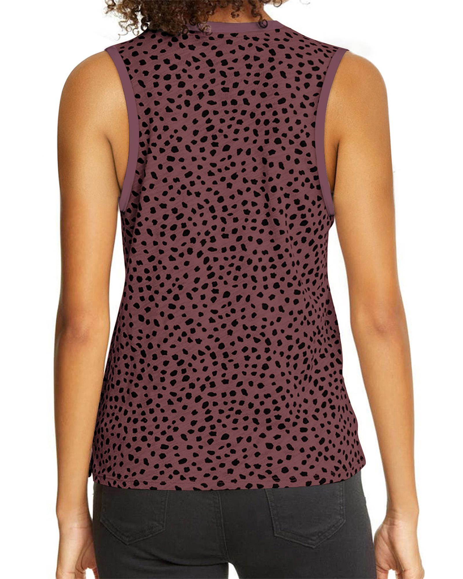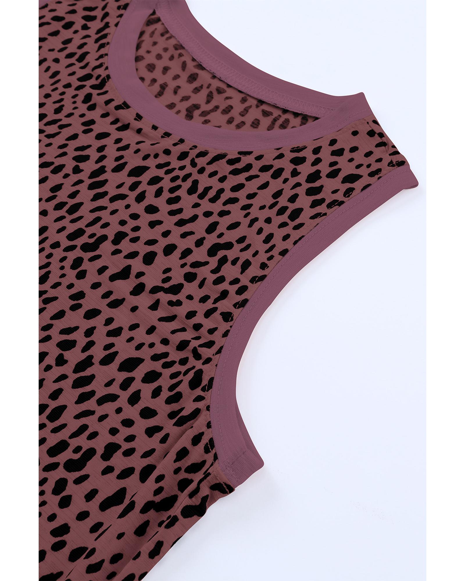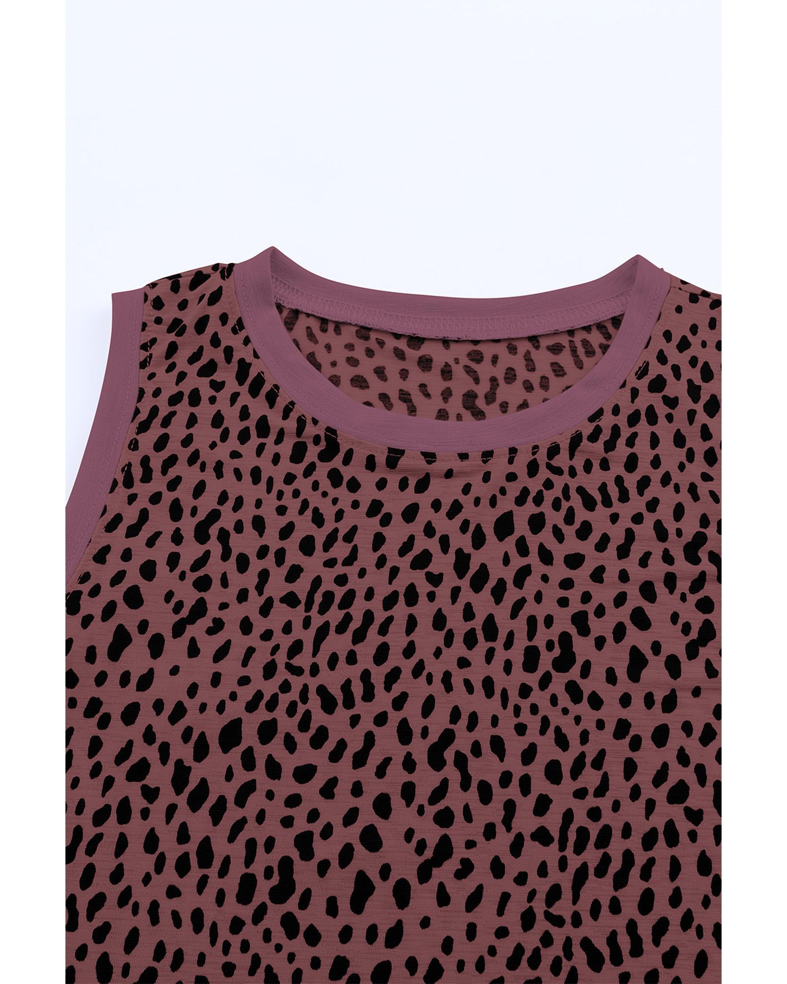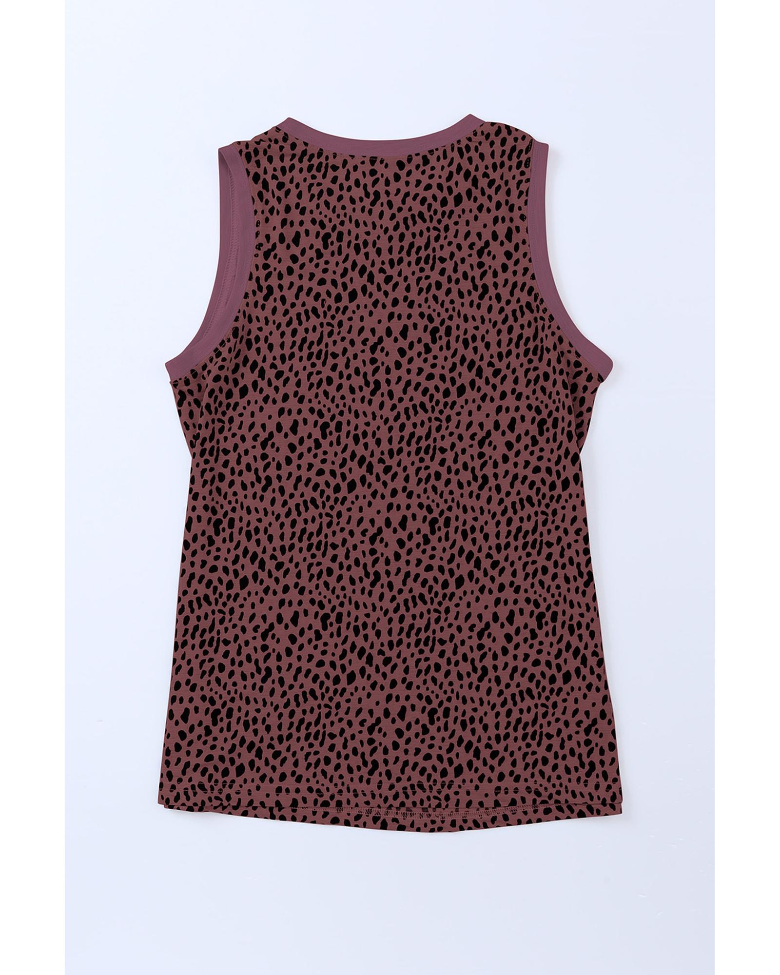 This tank top features a bold leopard print design with a round neckline, making it a versatile addition to any wardrobe. Its eye-catching pattern and comfortable fit allow for easy styling for various occasions, whether dressed up or down. The breathable fabric ensures comfort throughout the day.