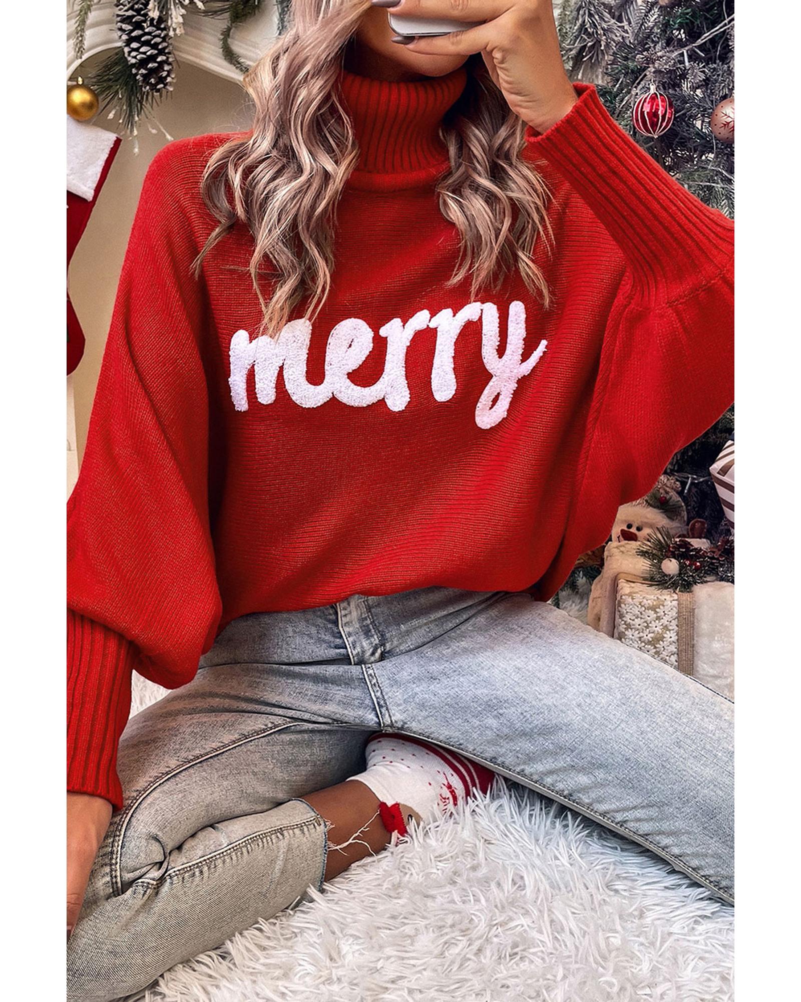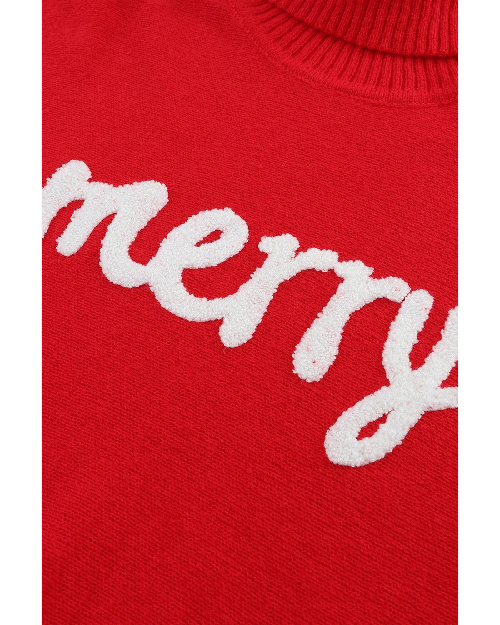 Azura Exchange Red Merry Letter Embroidered High Neck Sweater – L
