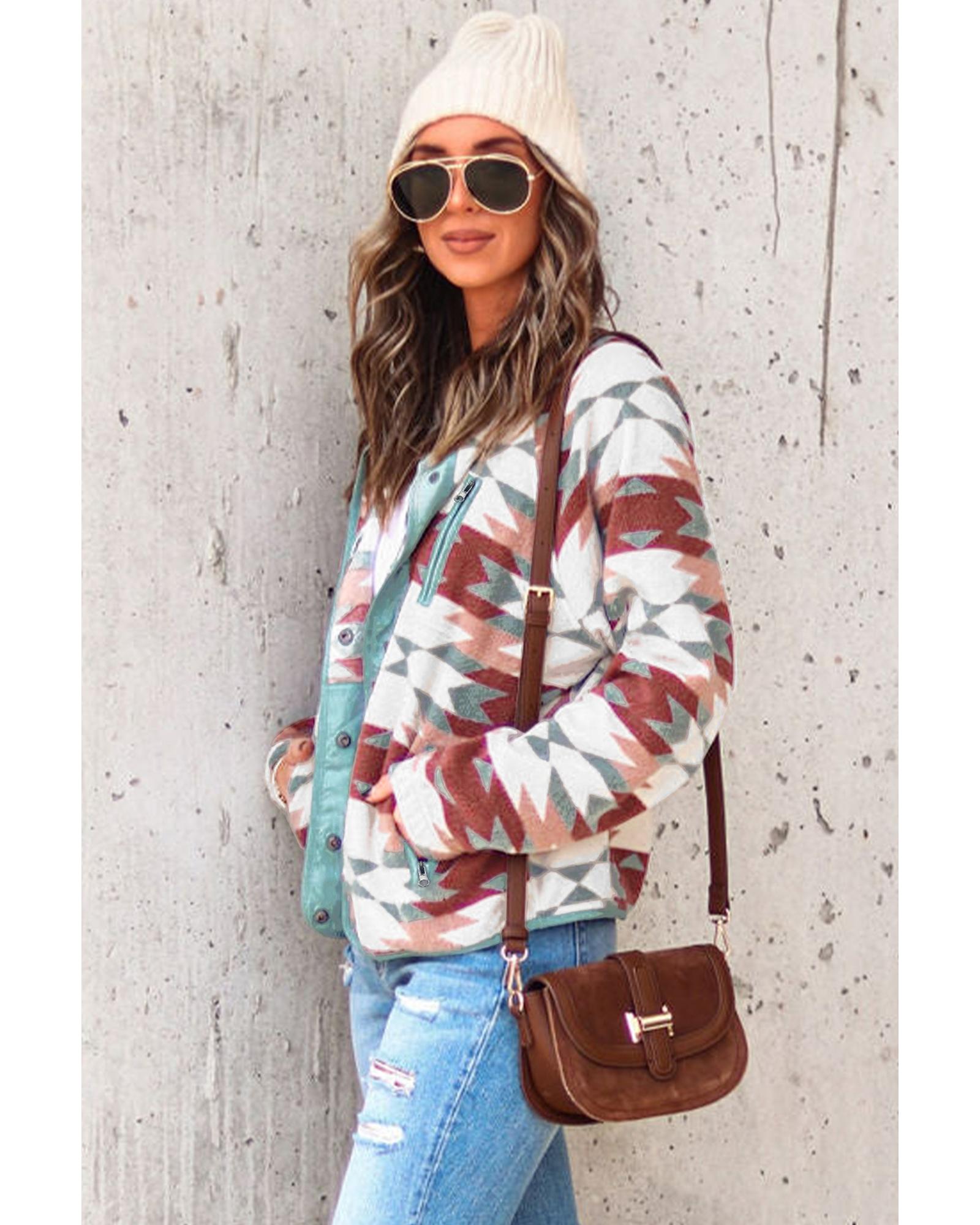 Azura Exchange Red Western Aztec Buttoned Zipper Pockets Fleece Jacket – XL
