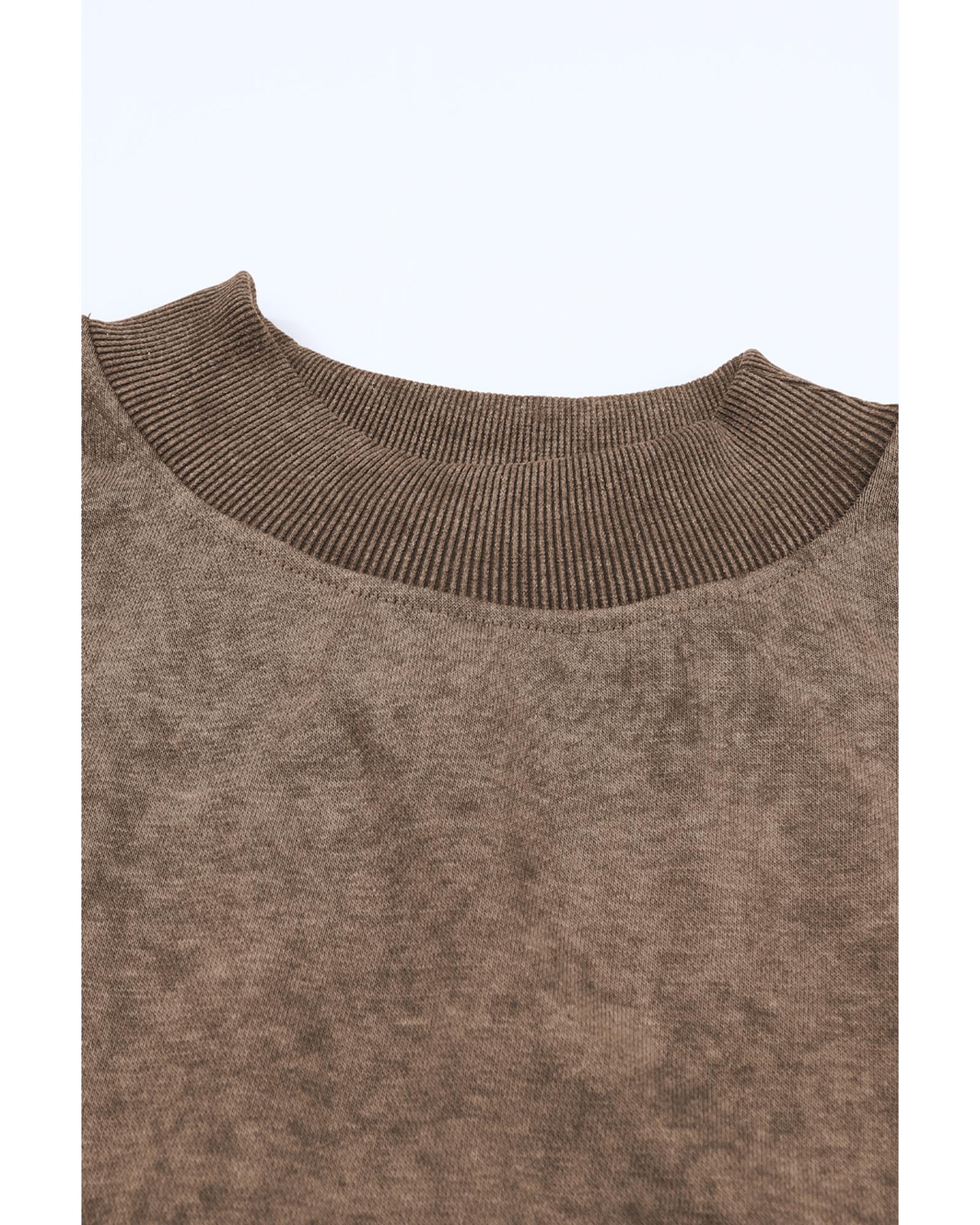 This relaxed brown crew neck sweatshirt features a drop shoulder design, offering a casual and vintage-inspired look. Its versatile style makes it suitable for various outfits, whether paired with jeans, leggings, or a skirt. Designed to fit women of different ages and body shapes, it combines comfort with fashion.