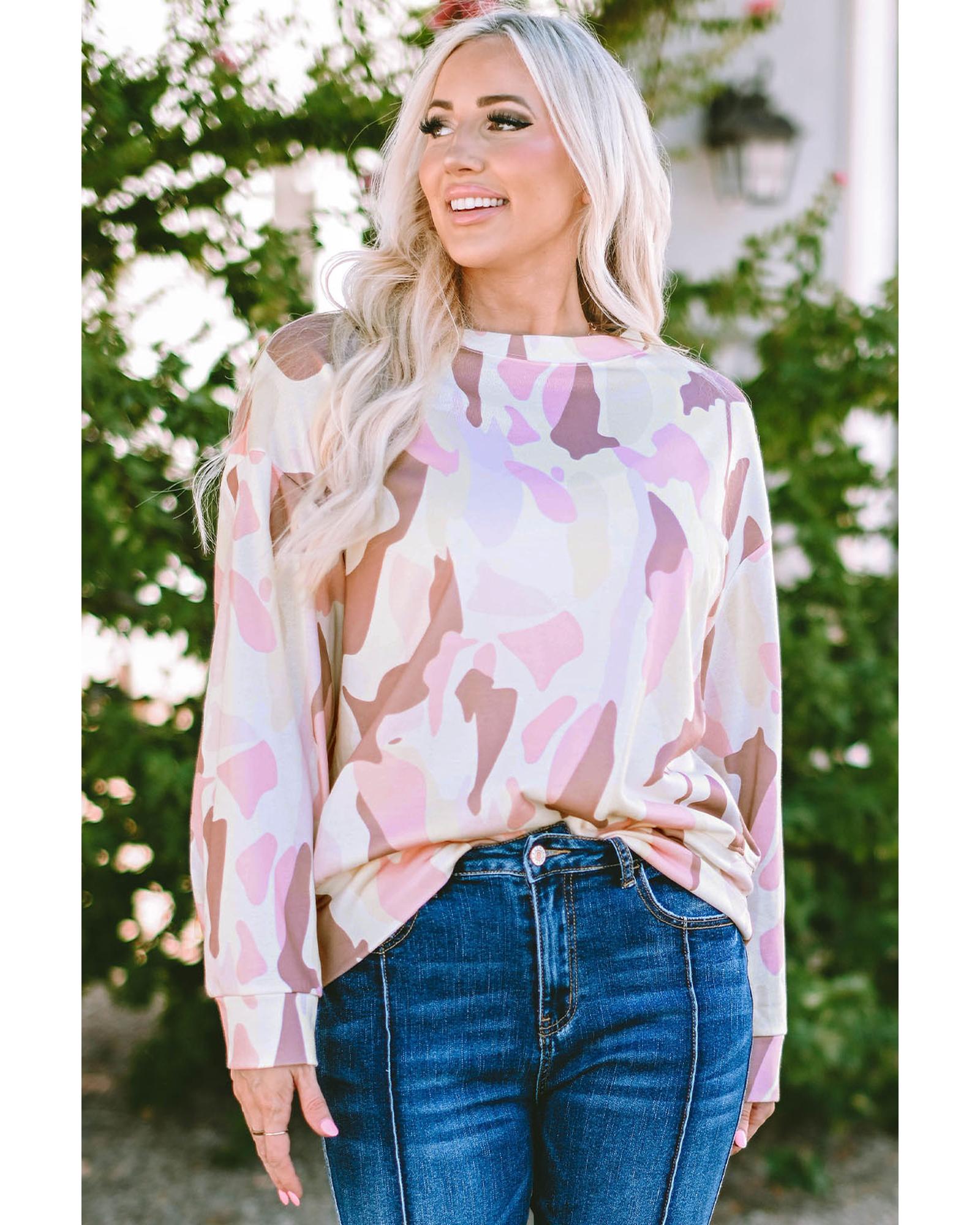 This relaxed geometric print crewneck sweatshirt offers a comfortable and stylish casual wear option. Designed with a slouchy fit and drop shoulder details, it combines fashion with comfort for everyday wear.