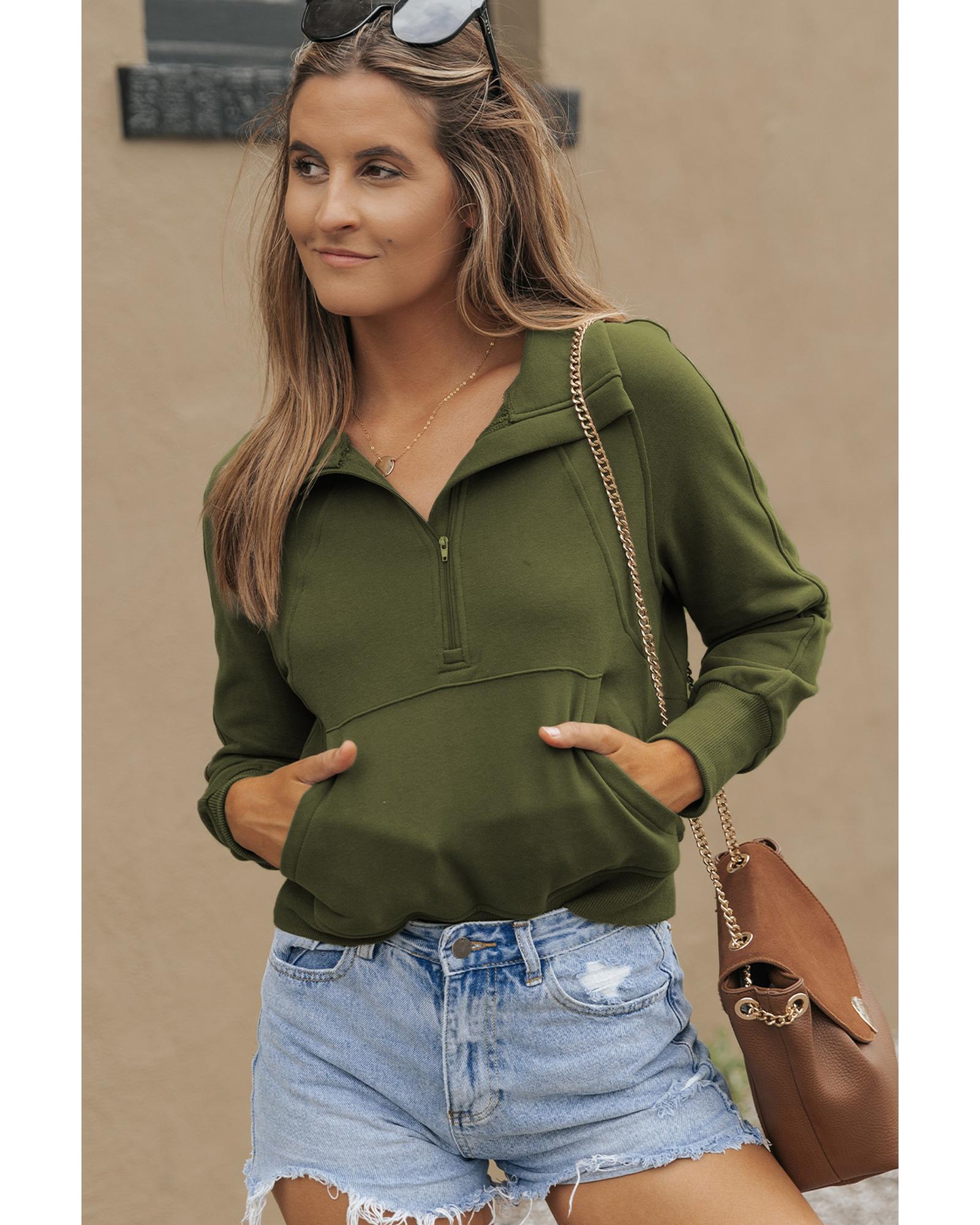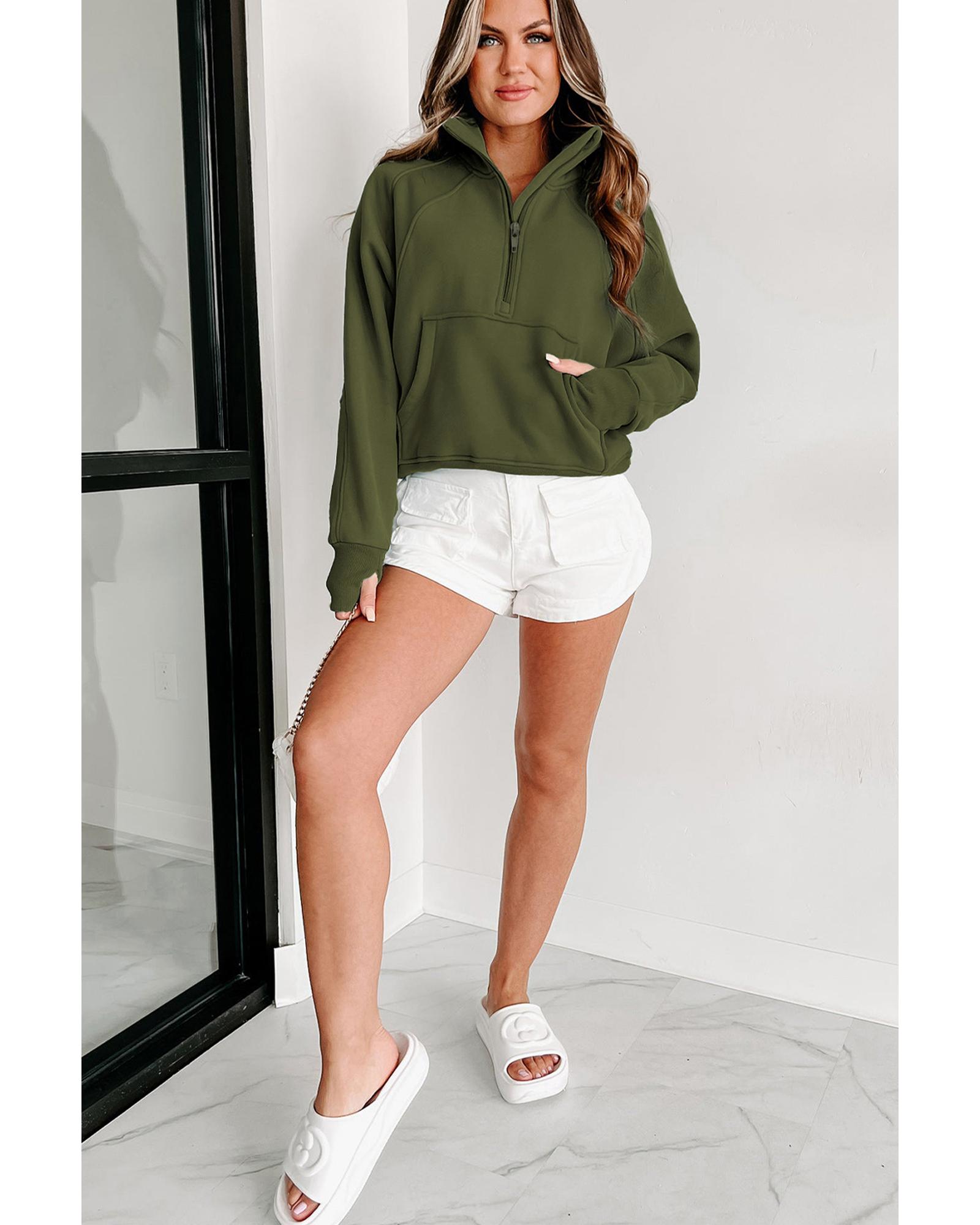 This ribbed thumbhole sleeve sweatshirt features a stand collar and zip closure, combining comfort and style. Its versatile design makes it suitable for various casual occasions, offering both functionality and fashion.