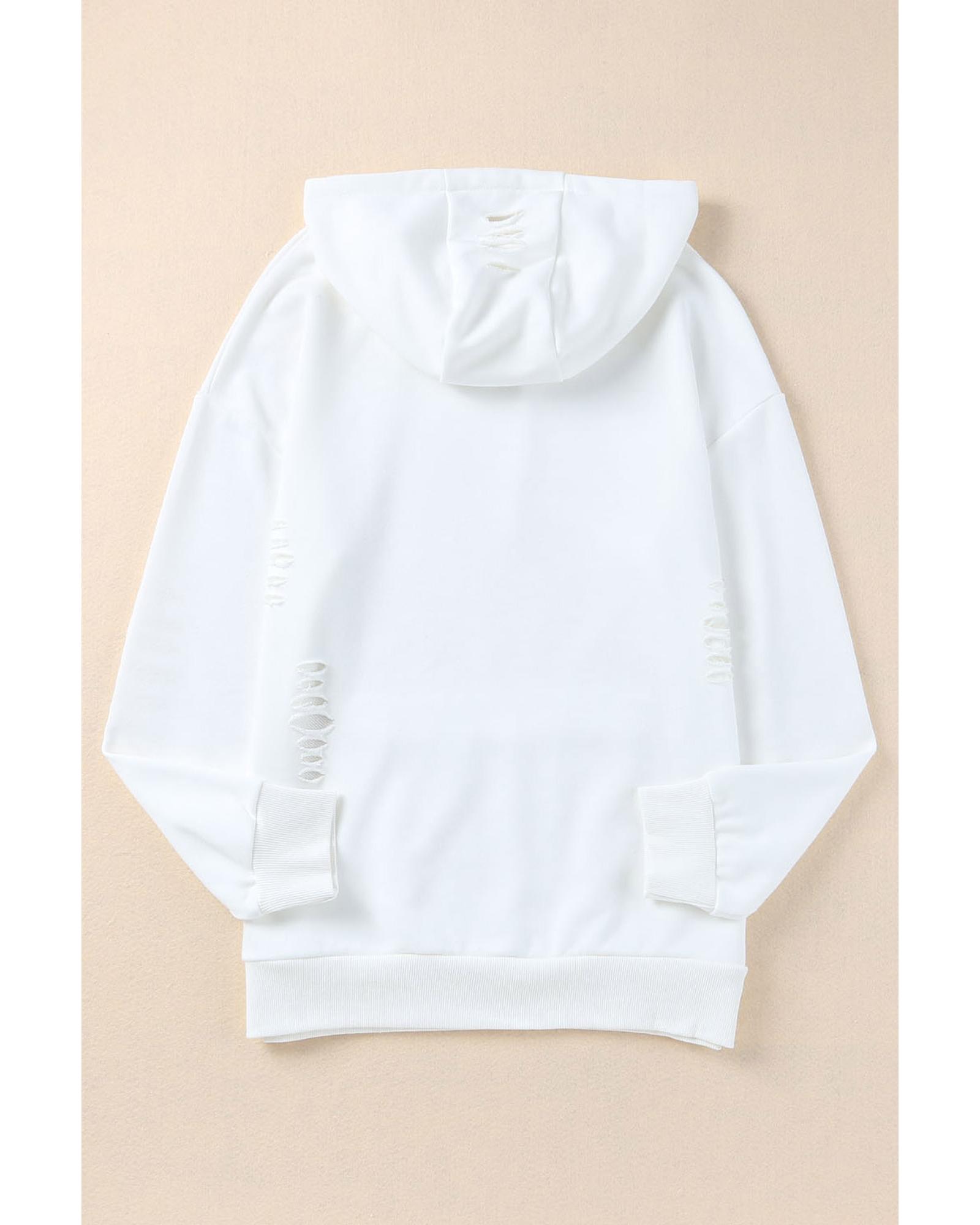 Azura Exchange Ripped Hooded Sweatshirt with Kangaroo Pocket - S