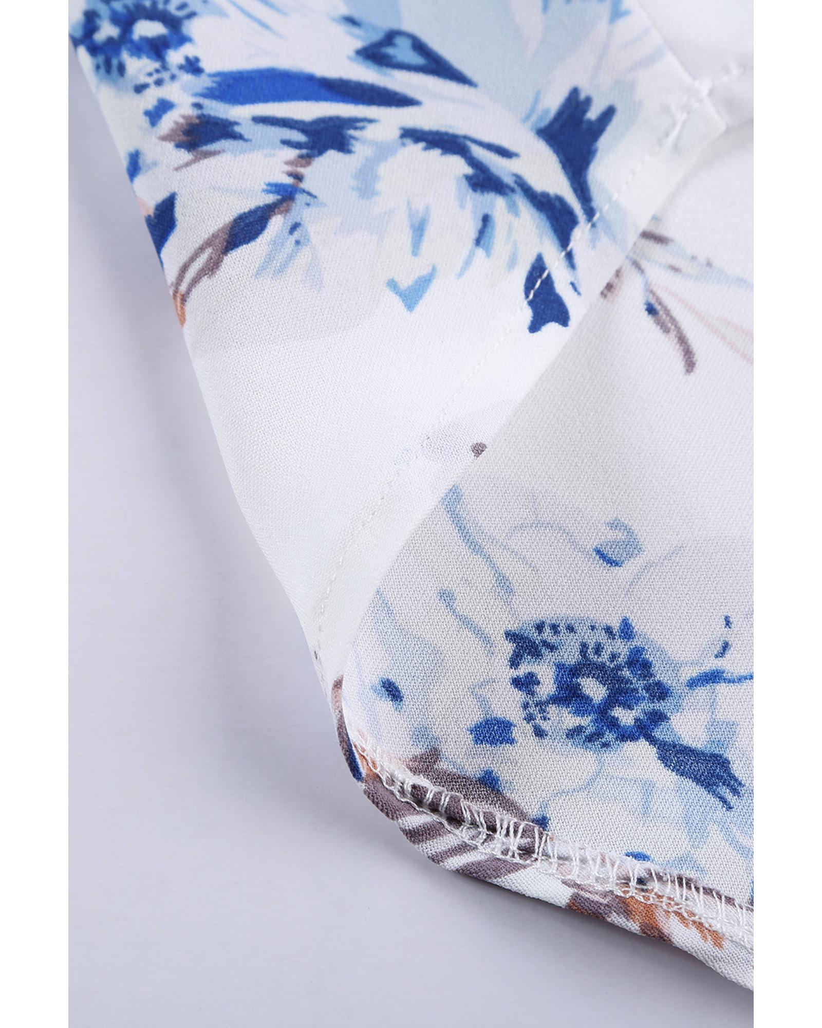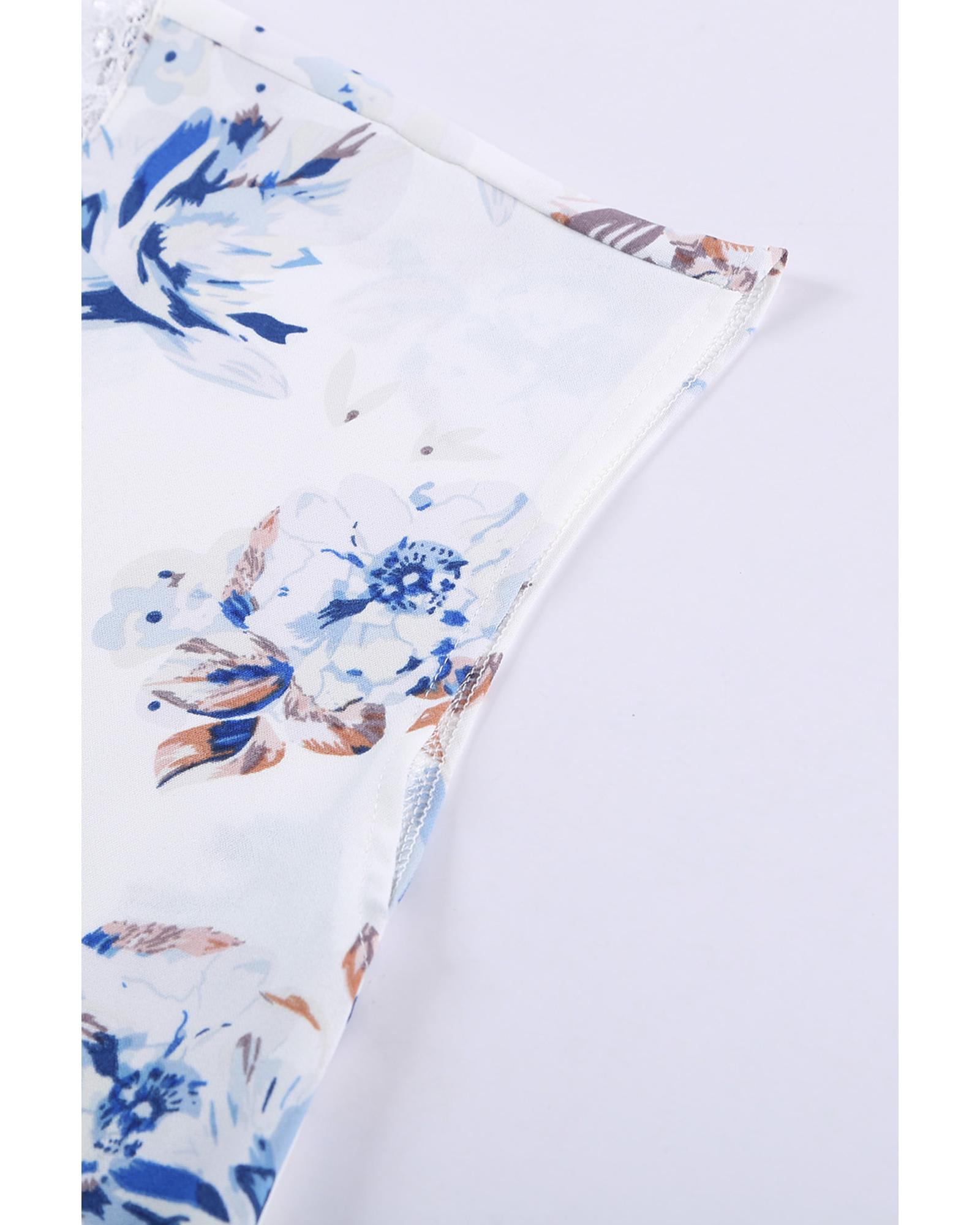 This floral scalloped V neck short sleeves top is designed for women, offering a stylish and elegant addition to your wardrobe. It features a beautiful floral pattern, a flattering V neck, and scalloped detailing along the edges, making it suitable for various occasions.