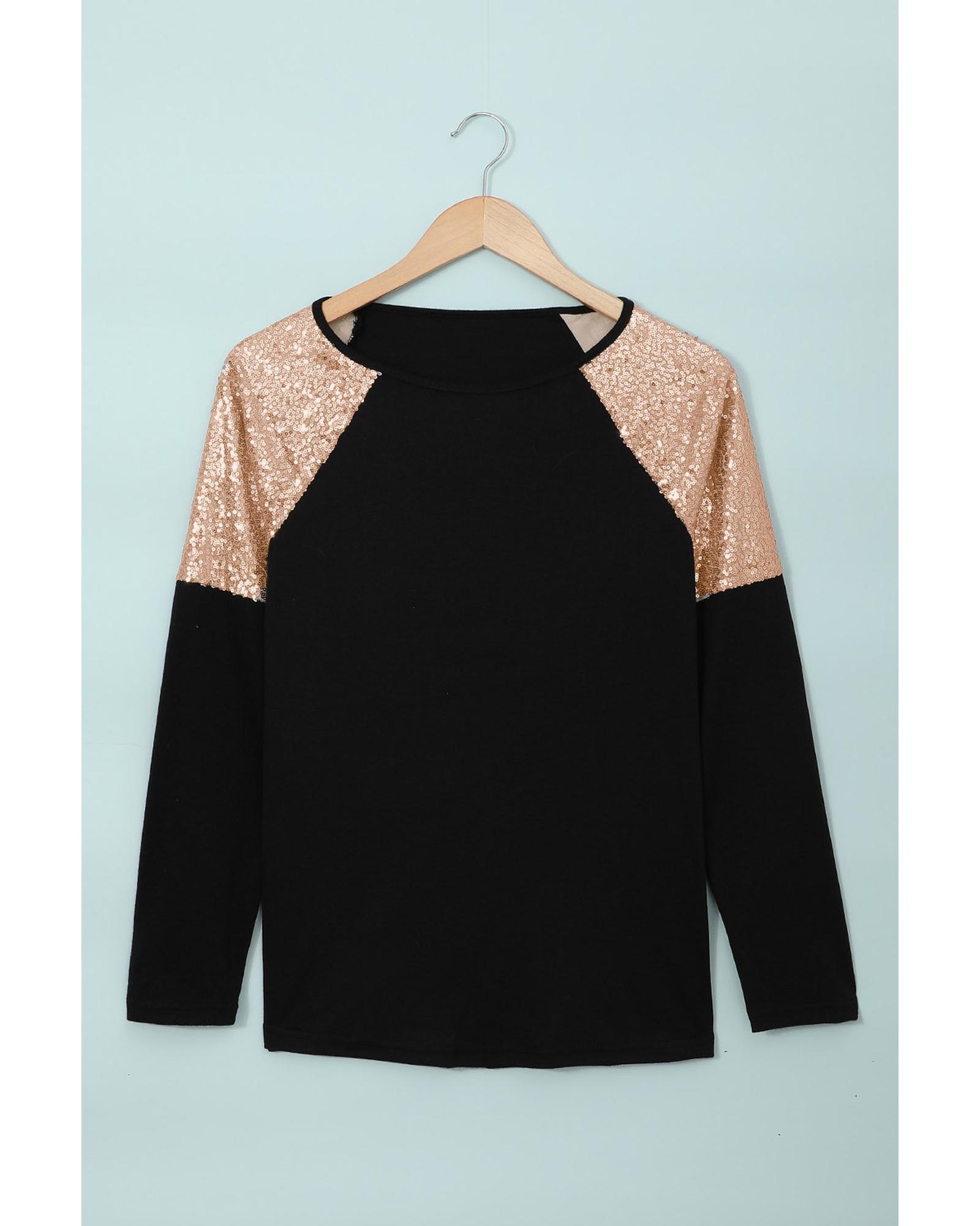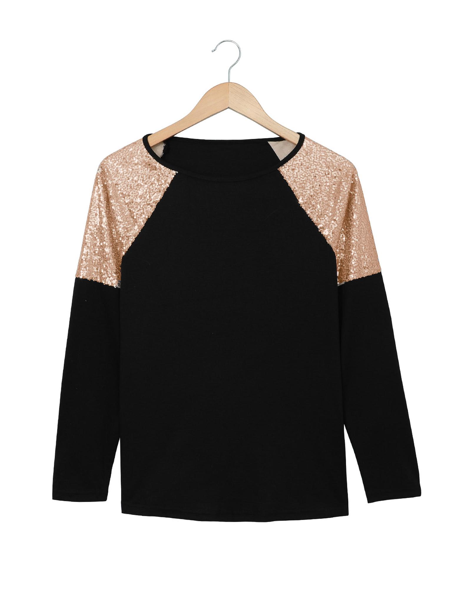 - Sequin shoulder long sleeve top