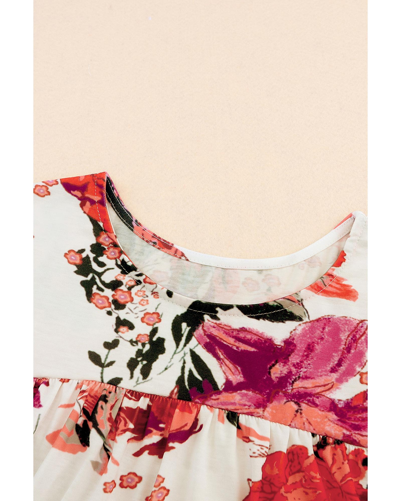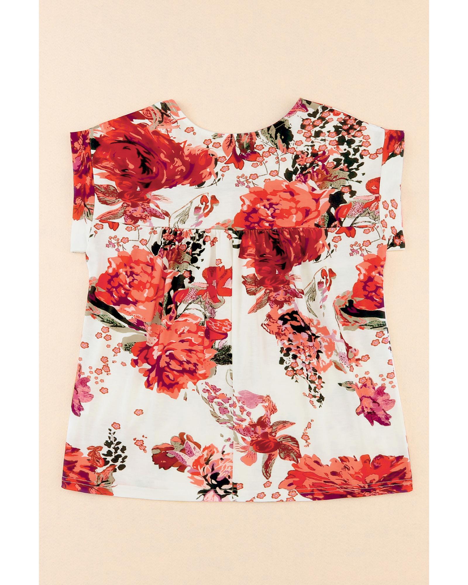 This floral short sleeve round neck blouse offers a stylish and versatile addition to your wardrobe. Crafted from quality materials, it provides a comfortable and luxurious feel, making it suitable for various occasions. The classic design features short sleeves and a round neckline, complemented by a beautiful floral pattern for a timeless and fashionable look.