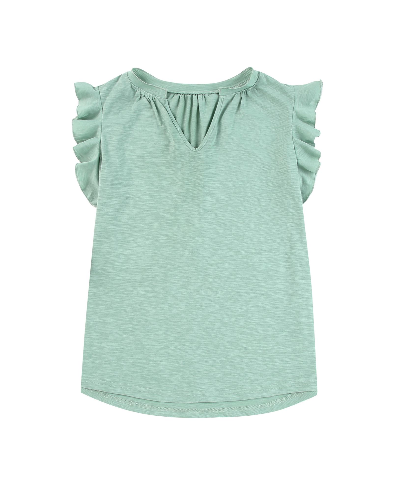 This solid V neck butterfly sleeve blouse offers a stylish and versatile option for casual wear. Its feminine design features a flattering V neckline and butterfly sleeves, making it suitable for various occasions. Crafted from quality materials, it provides comfort and durability, allowing for easy dressing up or down. The blouse is available in a solid color, making it easy to pair with different bottoms and accessories for a chic look.