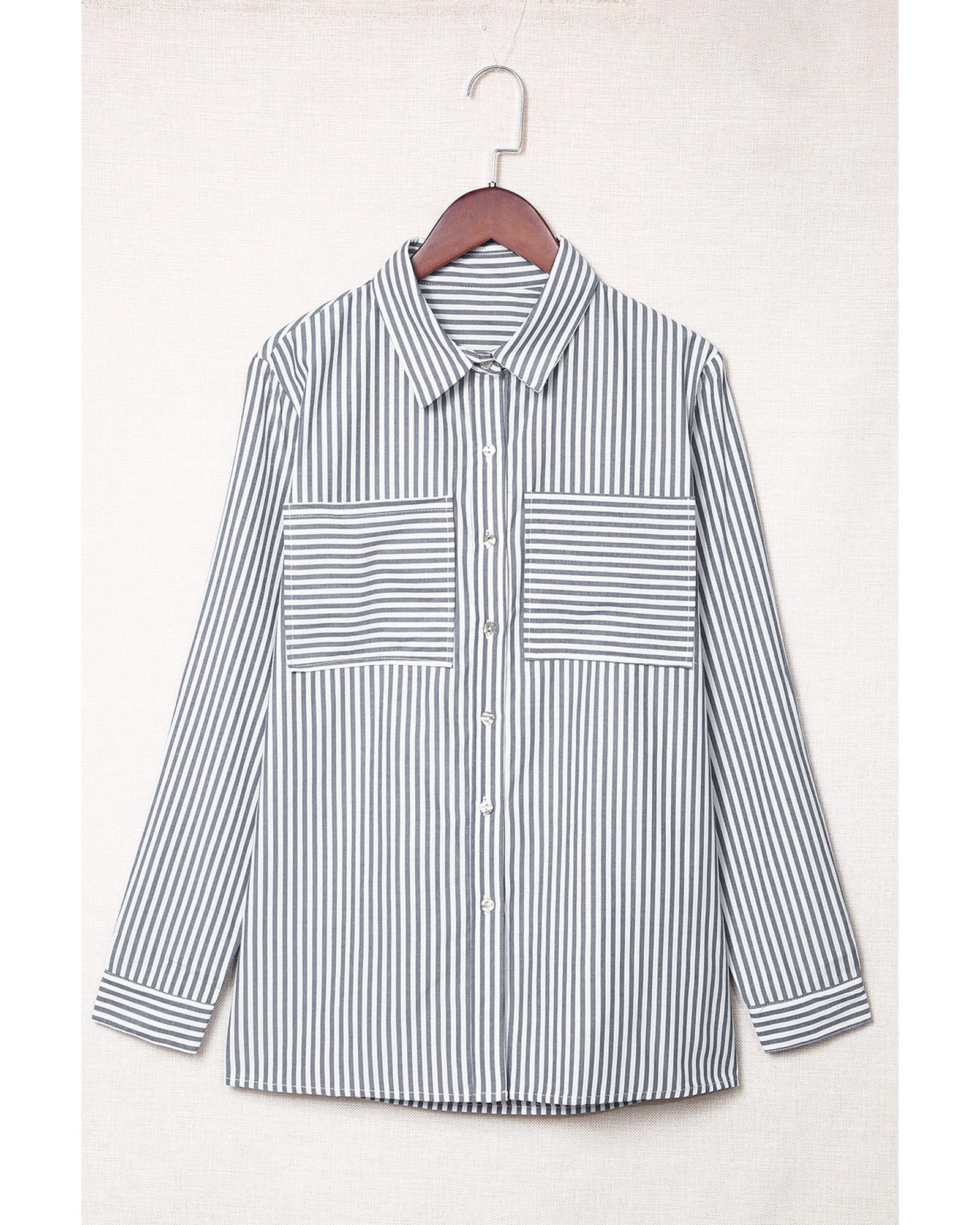 Azura Exchange Striped Long Sleeve Shirt with Pocketed Buttons – L