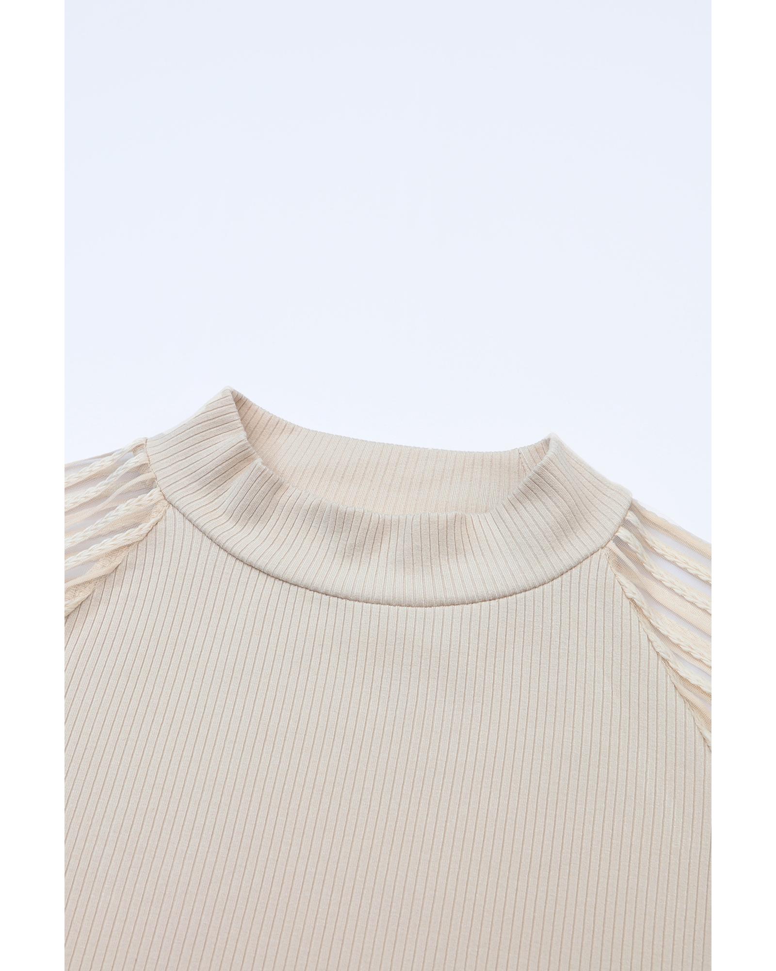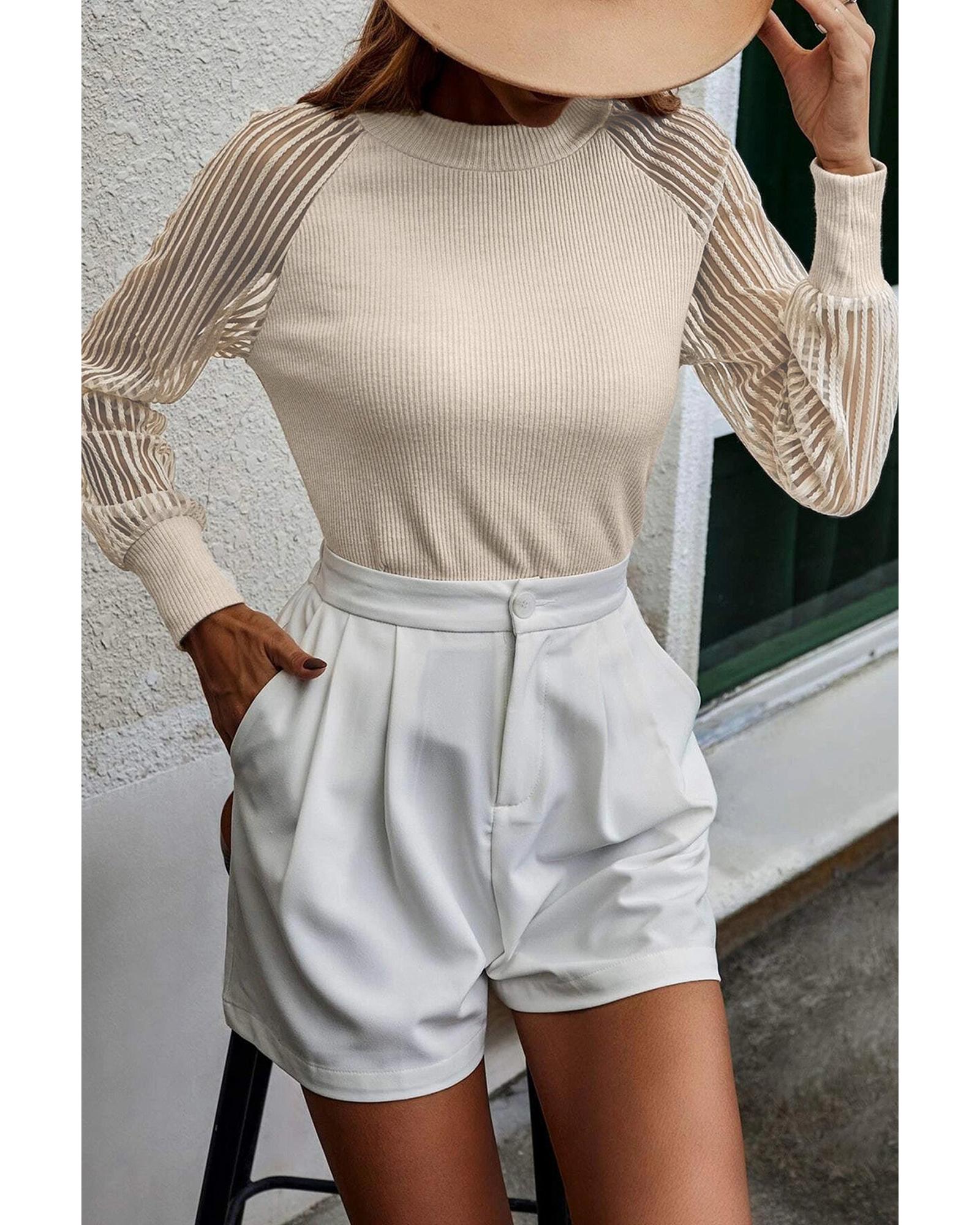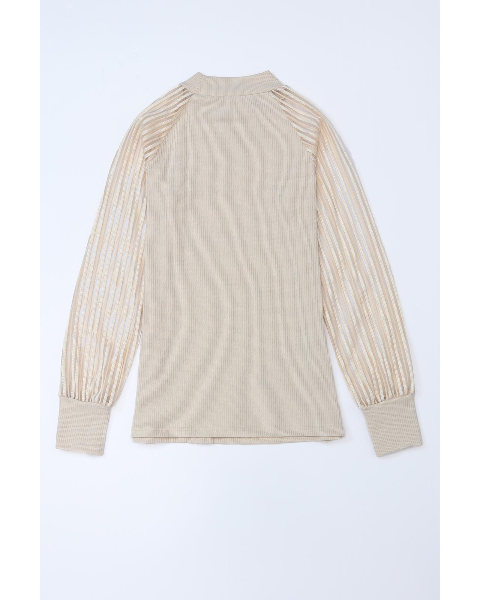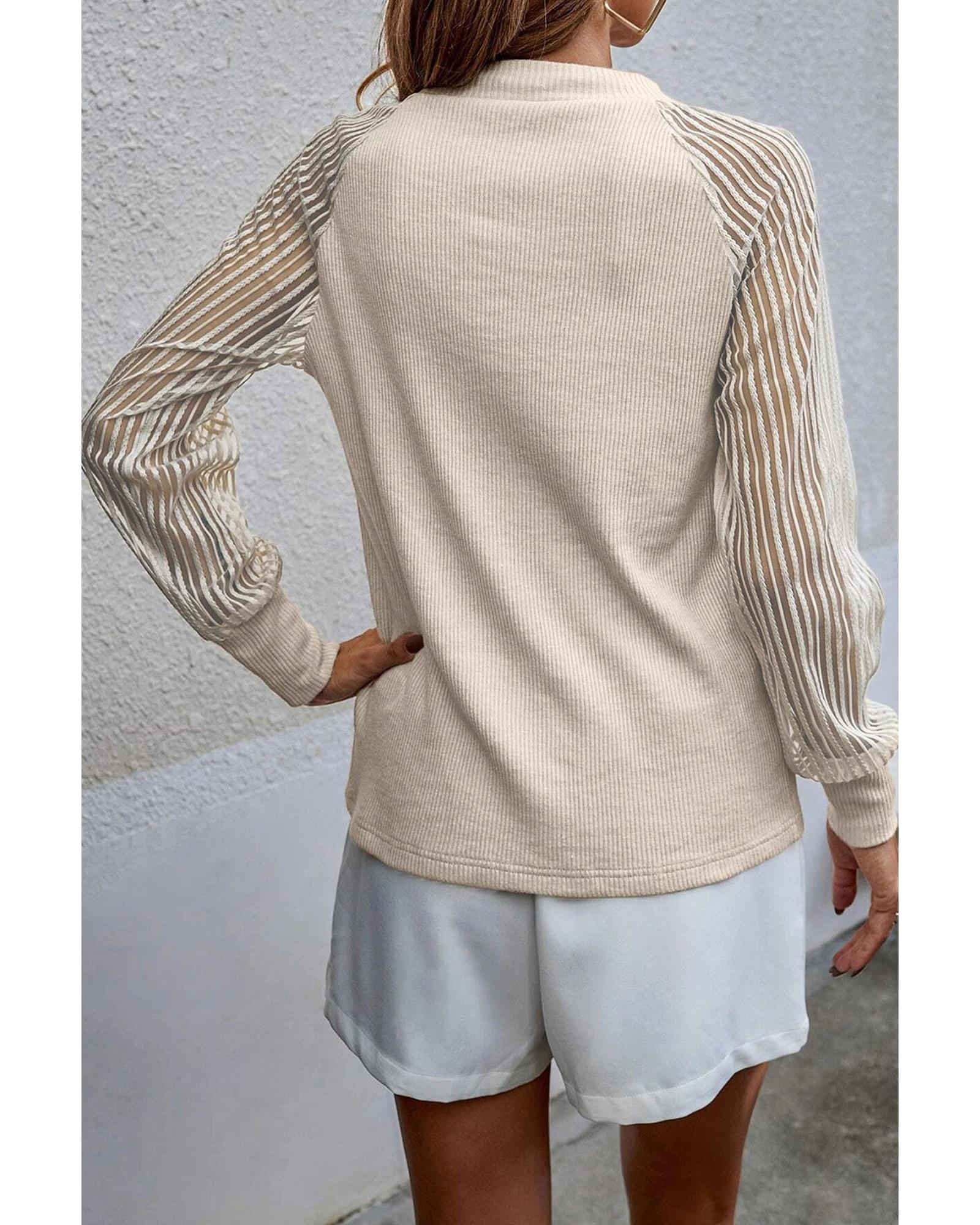 This long sleeve ribbed top features a stylish striped mesh design, offering a versatile addition to any wardrobe. Crafted with quality materials, it provides comfort and durability, making it suitable for various occasions. The classic crewneck with ribbed detailing adds a touch of sophistication and texture, enhancing your outfit with visual interest. Its apricot striped pattern makes it an eye-catching piece that can be dressed up or down and easily paired with jeans, skirts, or trousers. Designed for women, it is flattering for a variety of body types.