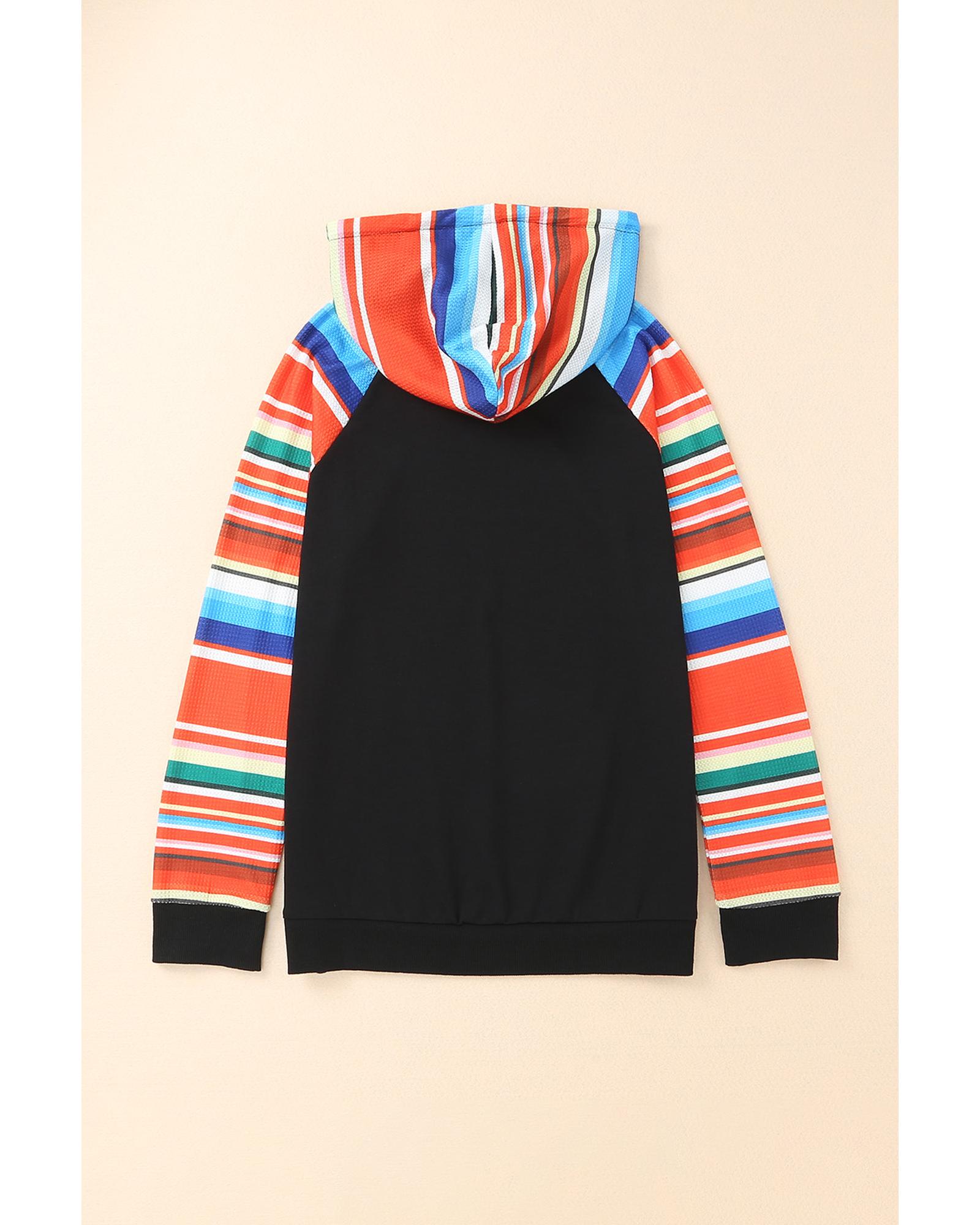 This colorful striped patchwork hoodie features a stylish and trendy design, making it a versatile addition to any wardrobe. Crafted with quality materials, it offers comfort and durability for everyday wear.