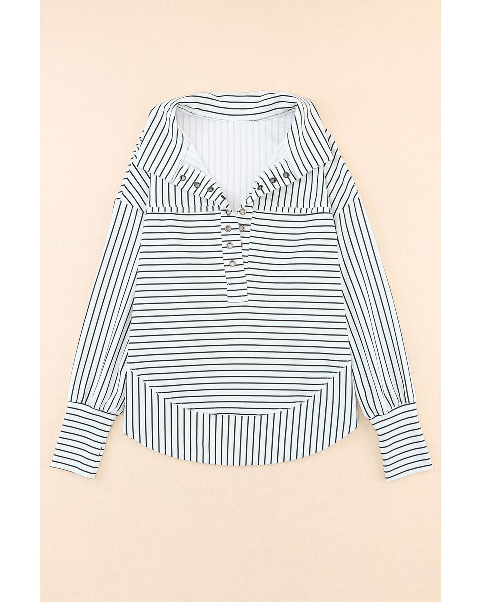 This casual blouse combines comfort and style with its unique design and high-quality materials. It features a trendy striped pattern, thumbhole details for extra coziness, and a relaxed drop shoulder fit, making it suitable for everyday wear.