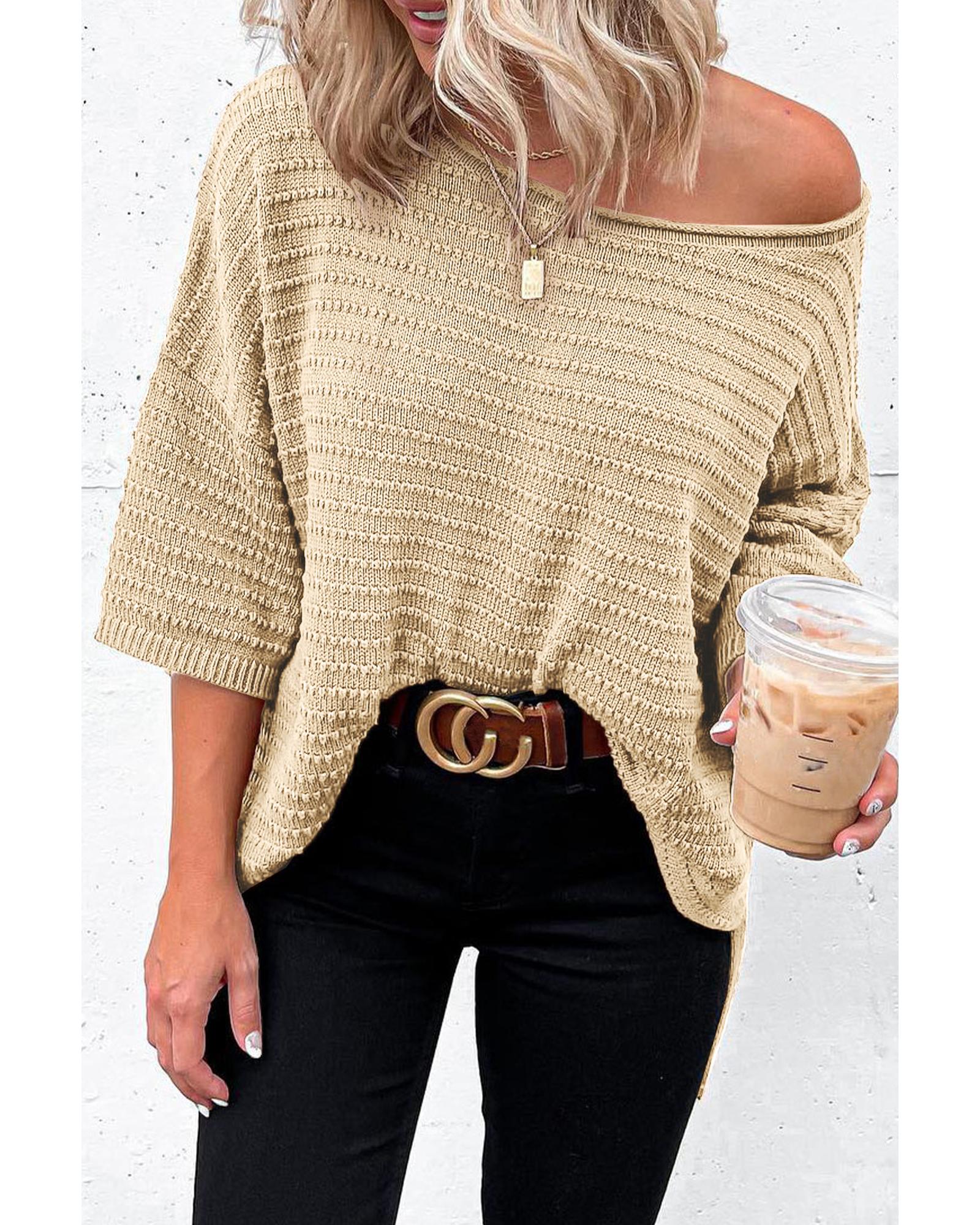 Azura Exchange Textured Knit Drop Shoulder Tee – S