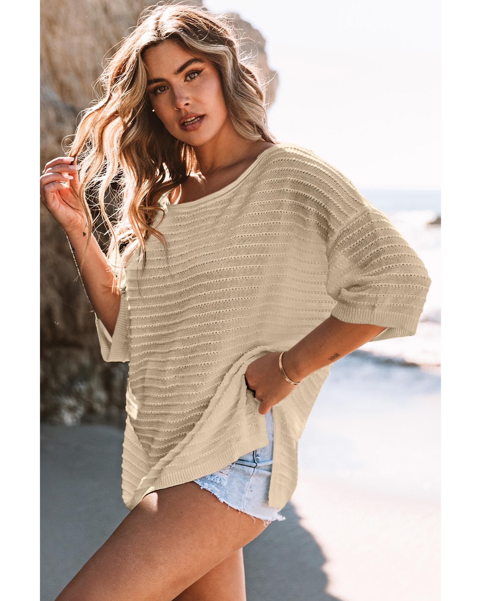 Azura Exchange Textured Knit Drop Shoulder Tee – XL