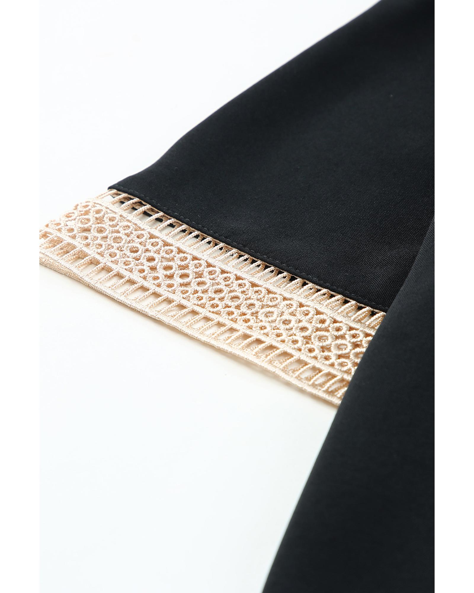 This V-neck short sleeve blouse features delicate lace trim details, offering a stylish and elegant look suitable for various occasions. Its flattering neckline and refined design make it a versatile addition to any wardrobe, perfect for both formal and casual settings.