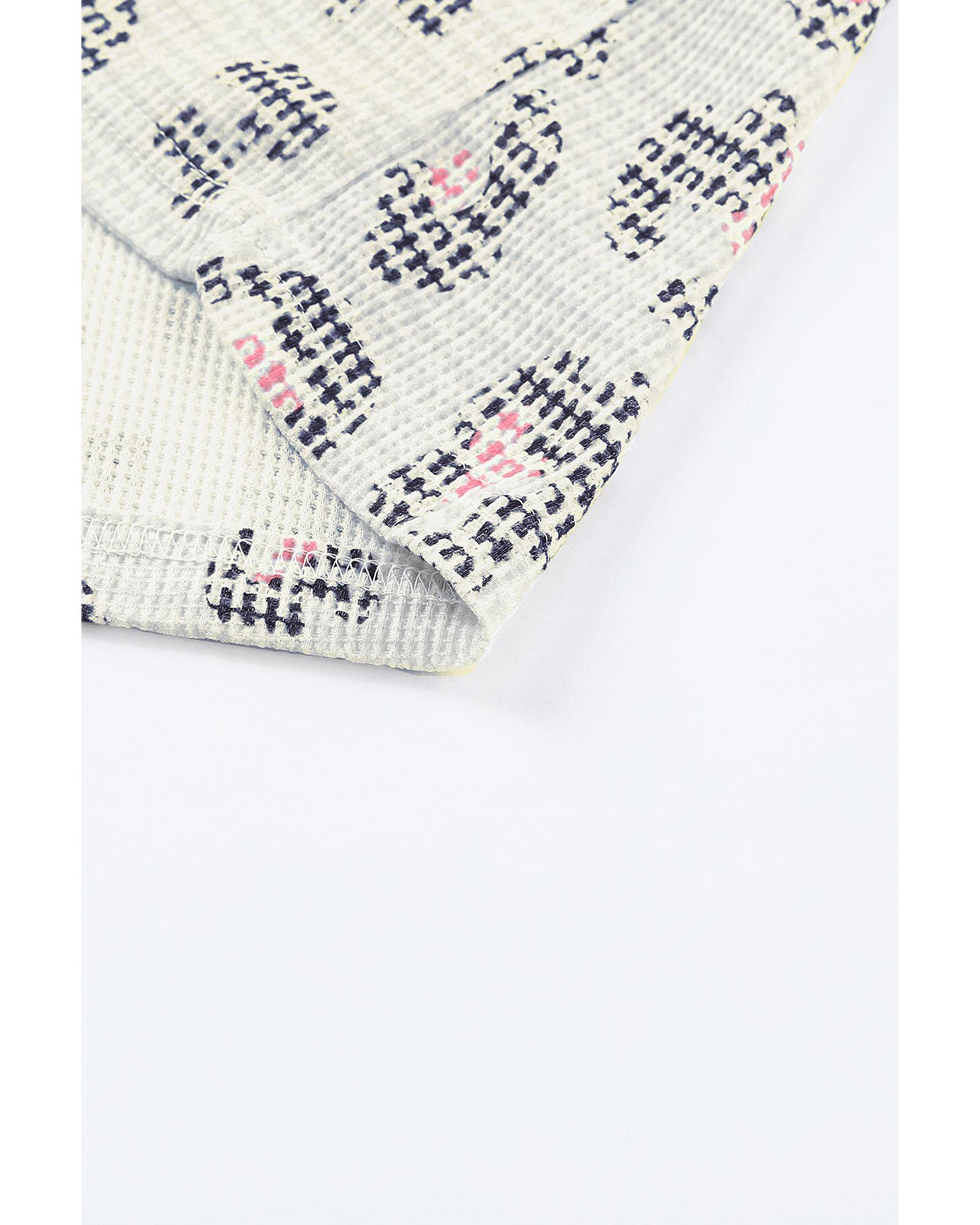 This waffle knit short sleeve top offers a combination of luxury and style, making it a versatile addition to any wardrobe. Designed with comfort and elegance in mind, it features a textured waffle knit pattern and short sleeves suitable for various occasions.