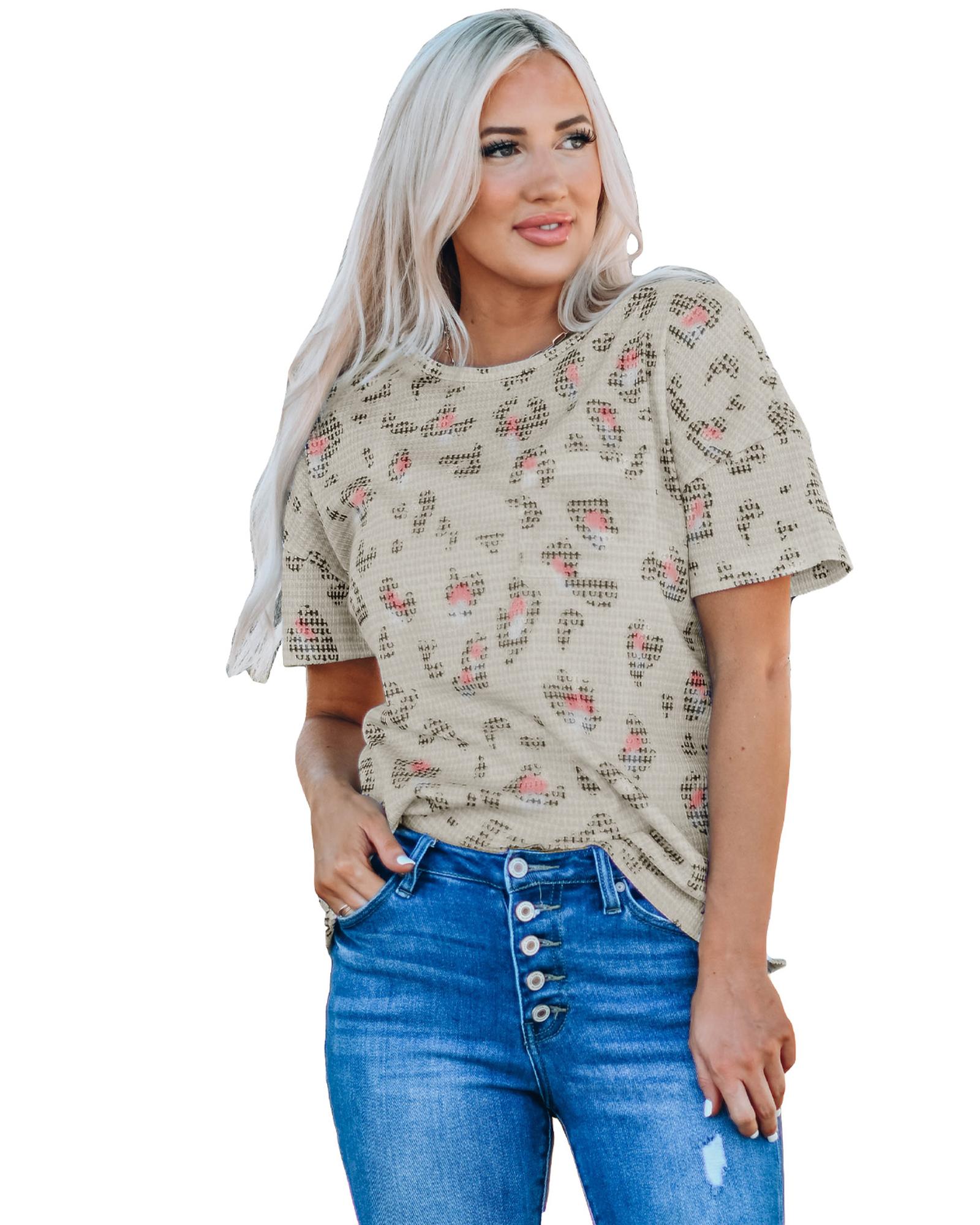 This waffle knit short sleeve top combines luxury and style with its comfortable design and versatile appearance. Crafted from high-quality polyester, it is suitable for various occasions and offers a fashionable yet practical choice for everyday wear.