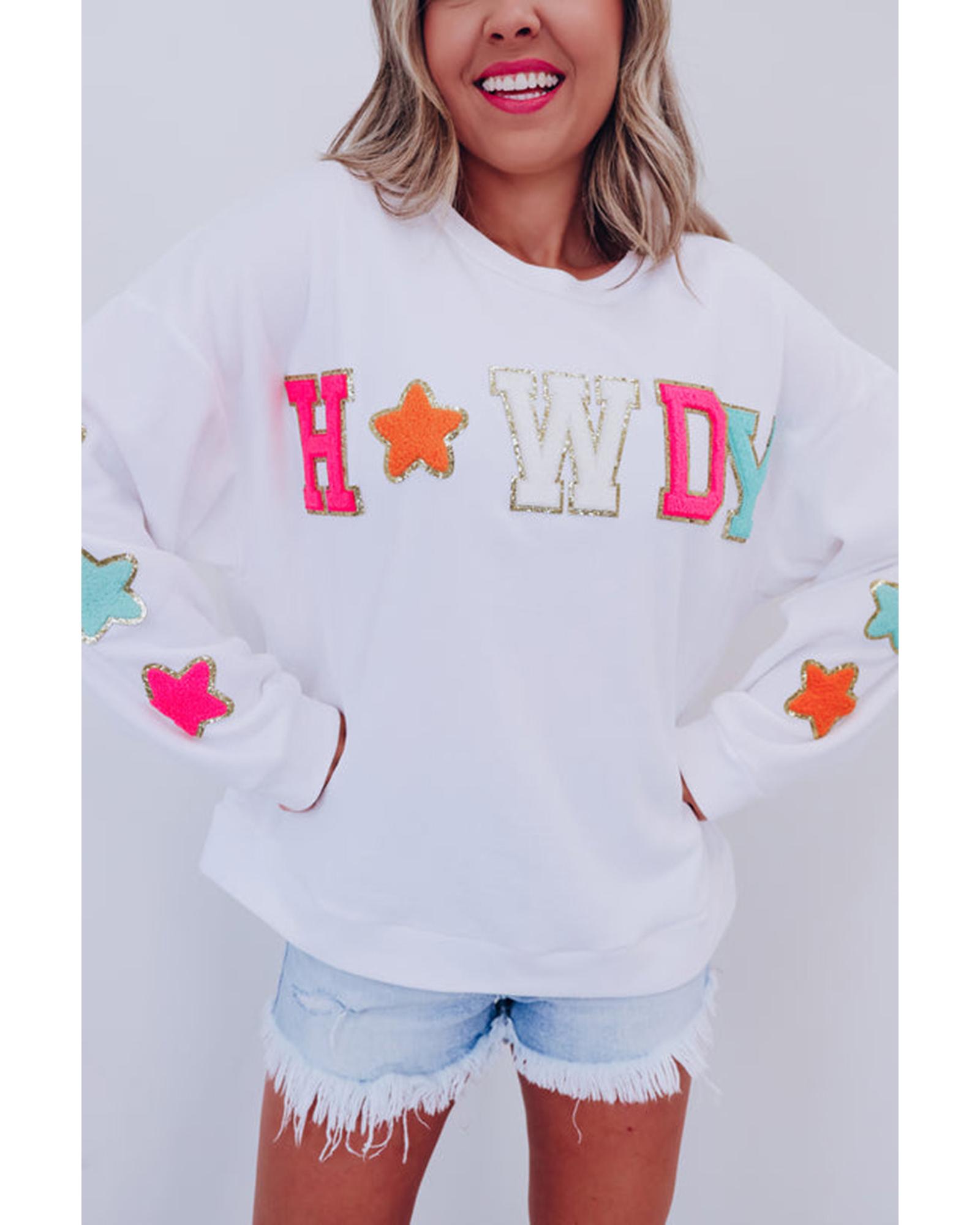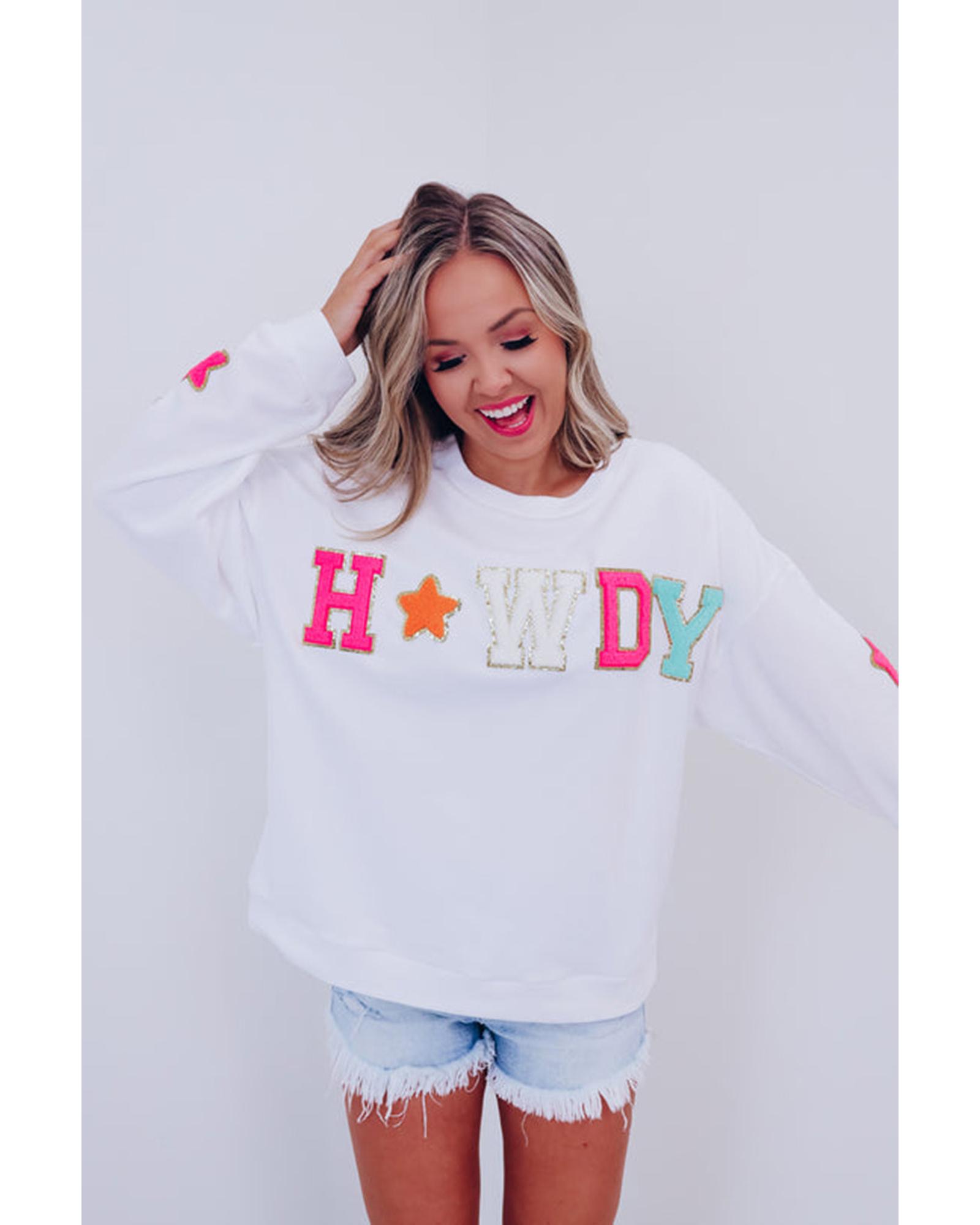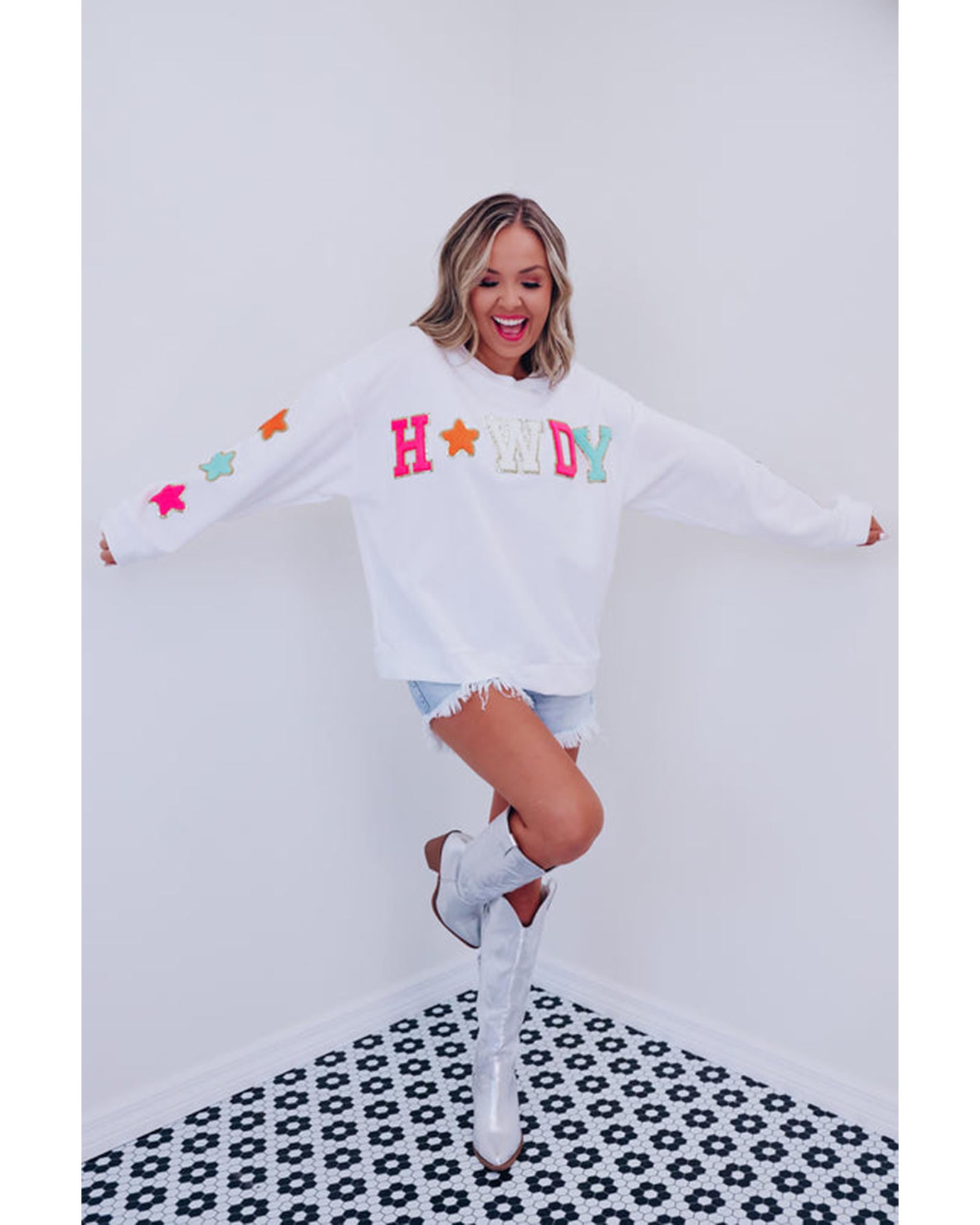 Azura Exchange White Glitter Howdy Patch Graphic Casual Sweatshirt – S