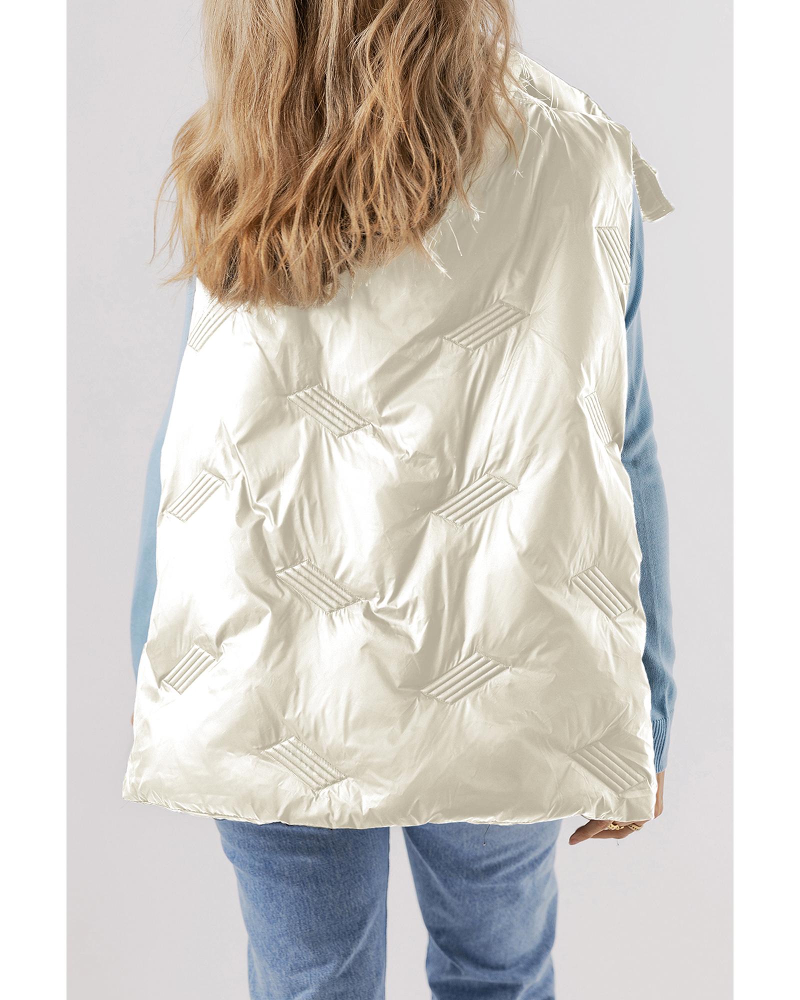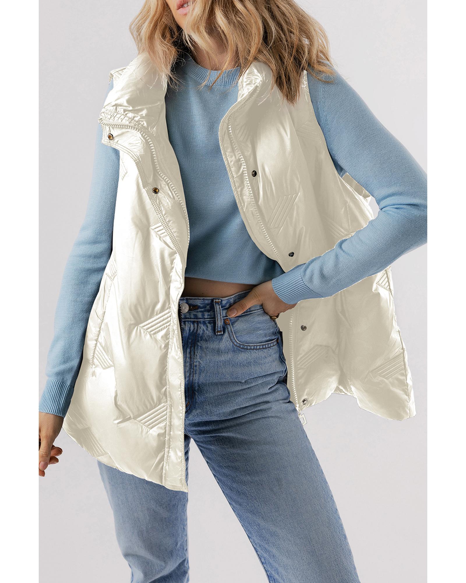 Azura Exchange White Quilted High Neck Zip Up Jacket Vest – XL