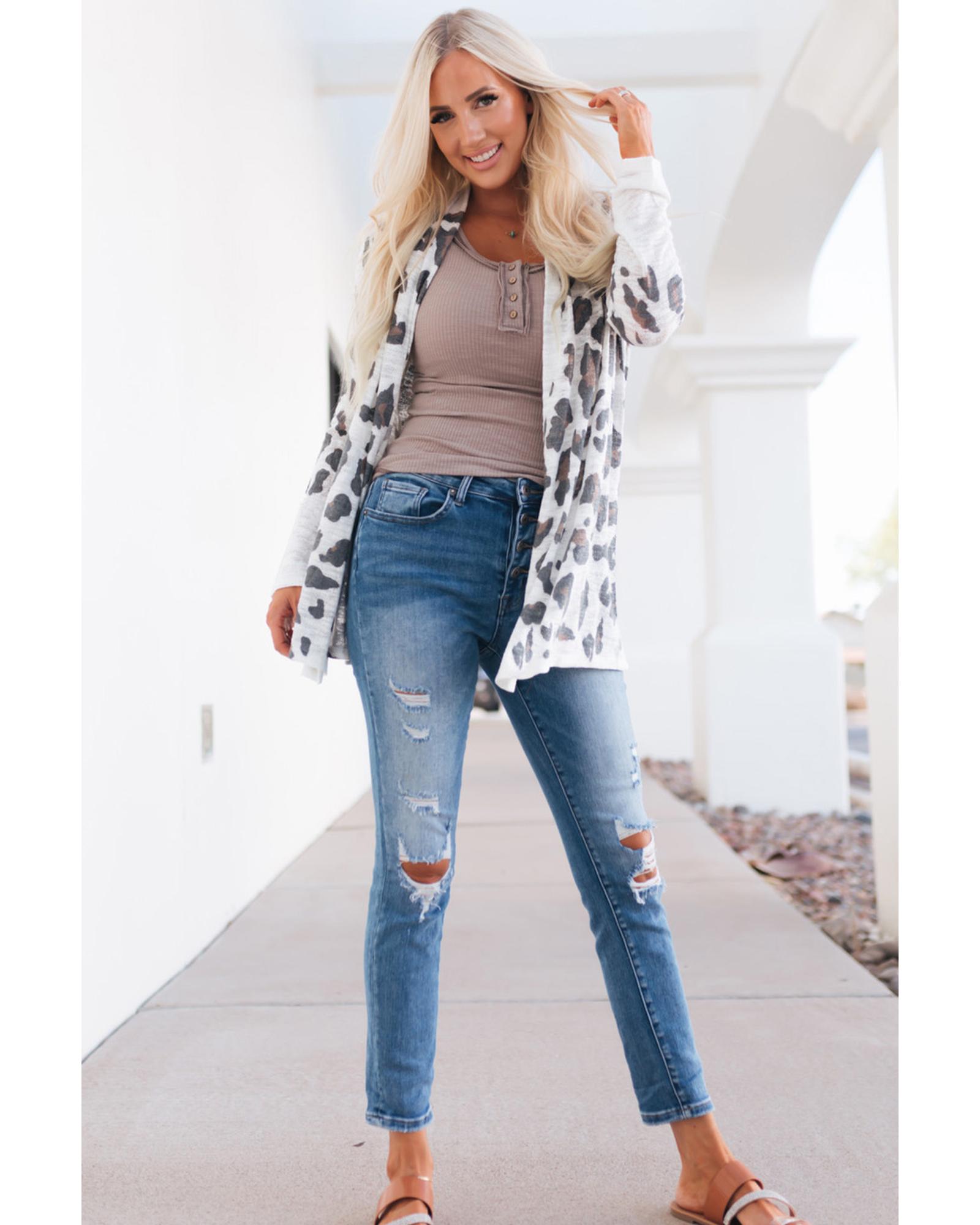 Azura Exchange White Vintage Leopard Print Open Cardigan – 2XL