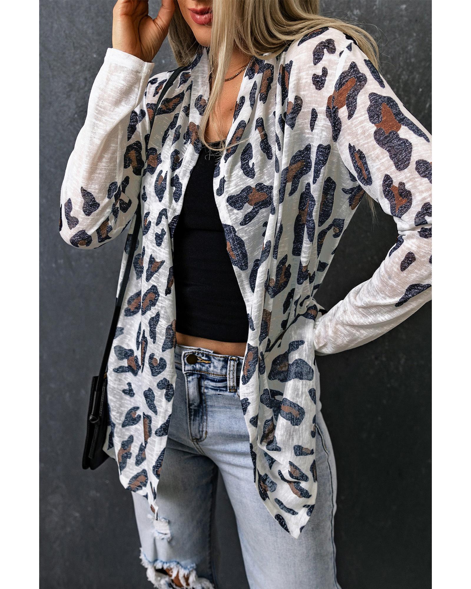 This open cardigan features a stylish leopard print design and is made from lightweight, breathable fabric. It is perfect for layering during cooler summer evenings and offers a comfortable fit with high elasticity. Its trendy pattern makes it a versatile addition to any casual wardrobe.