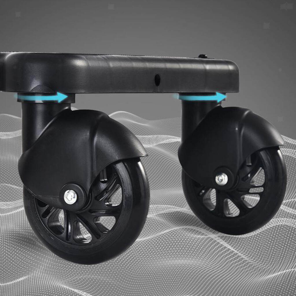 This 2-in-1 kid stroller board is designed to attach securely to the rear of a stroller, providing a stable platform for children to sit or stand. It is compatible with various stroller types and features a removable seat for added safety and convenience. The compact design allows for easy storage when not in use, making it practical for family outings and transporting two children simultaneously.