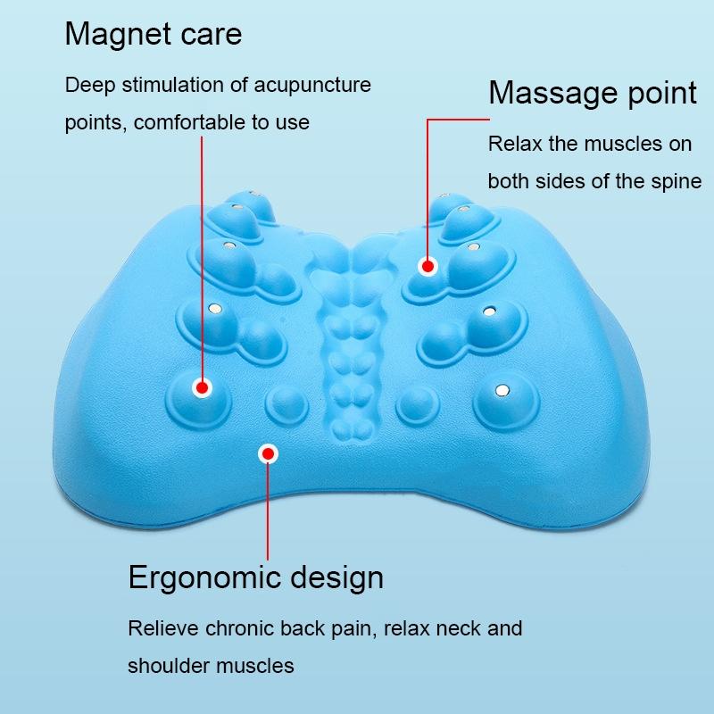 This back support magnet massage cushion is designed to provide comfortable and effective relief for back and neck muscles. It features advanced massage technology, acupressure points, and magnetic therapy to promote relaxation and alleviate chronic pain. Its ergonomic shape ensures a good fit for the lumbar region, making it suitable for daily use.