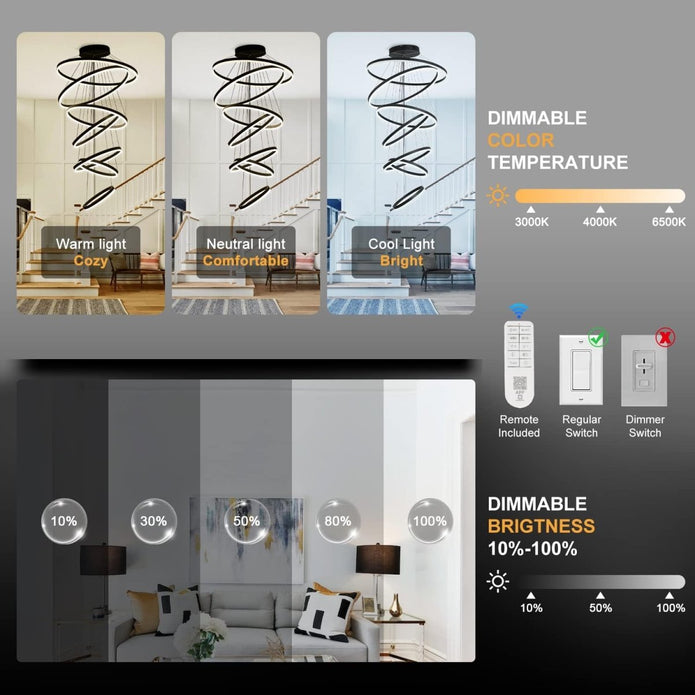 - Contemporary 7-Rings LED chandelier with a sleek circular frame and durable materials