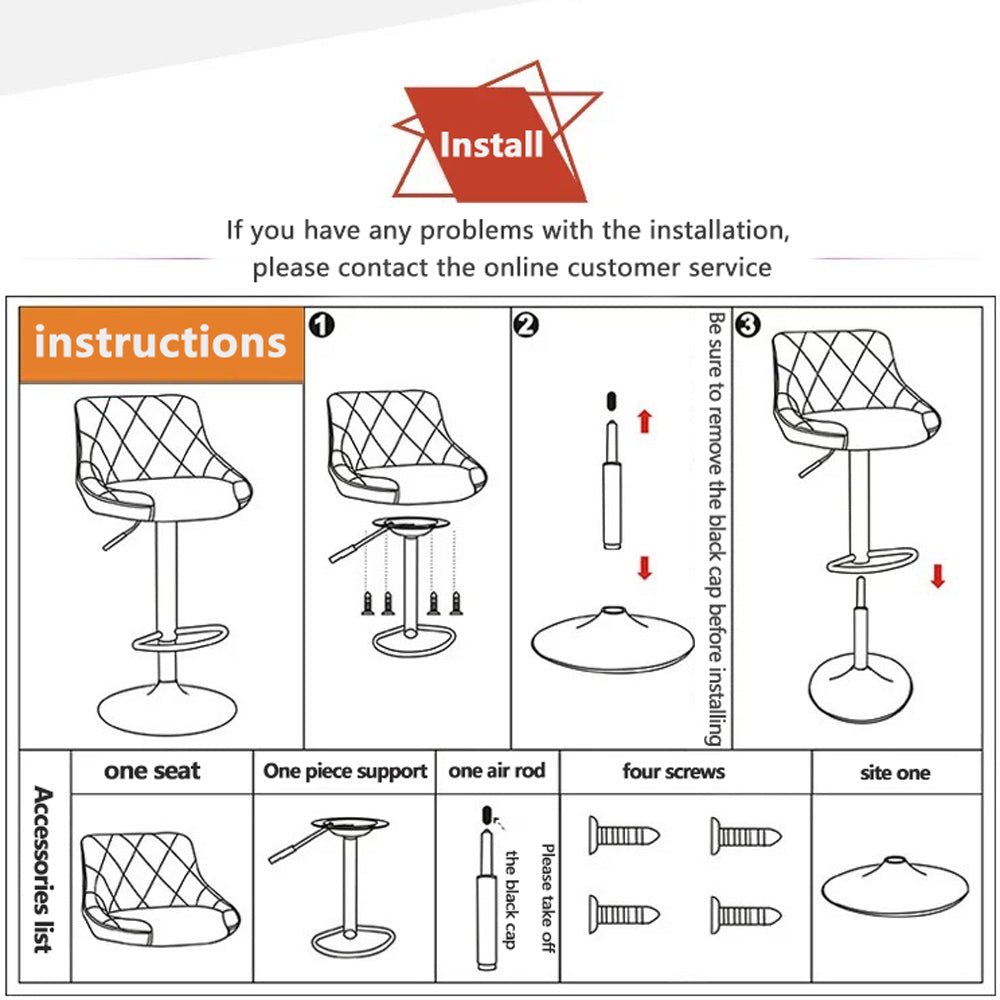 This modern bar stool combines stylish design with functional comfort, making it an ideal addition to contemporary homes or commercial spaces. It features adjustable height and a 360-degree swivel seat, providing flexibility and ease of use. Crafted with durable materials and finished with a sleek chrome base, this stool offers both elegance and stability.