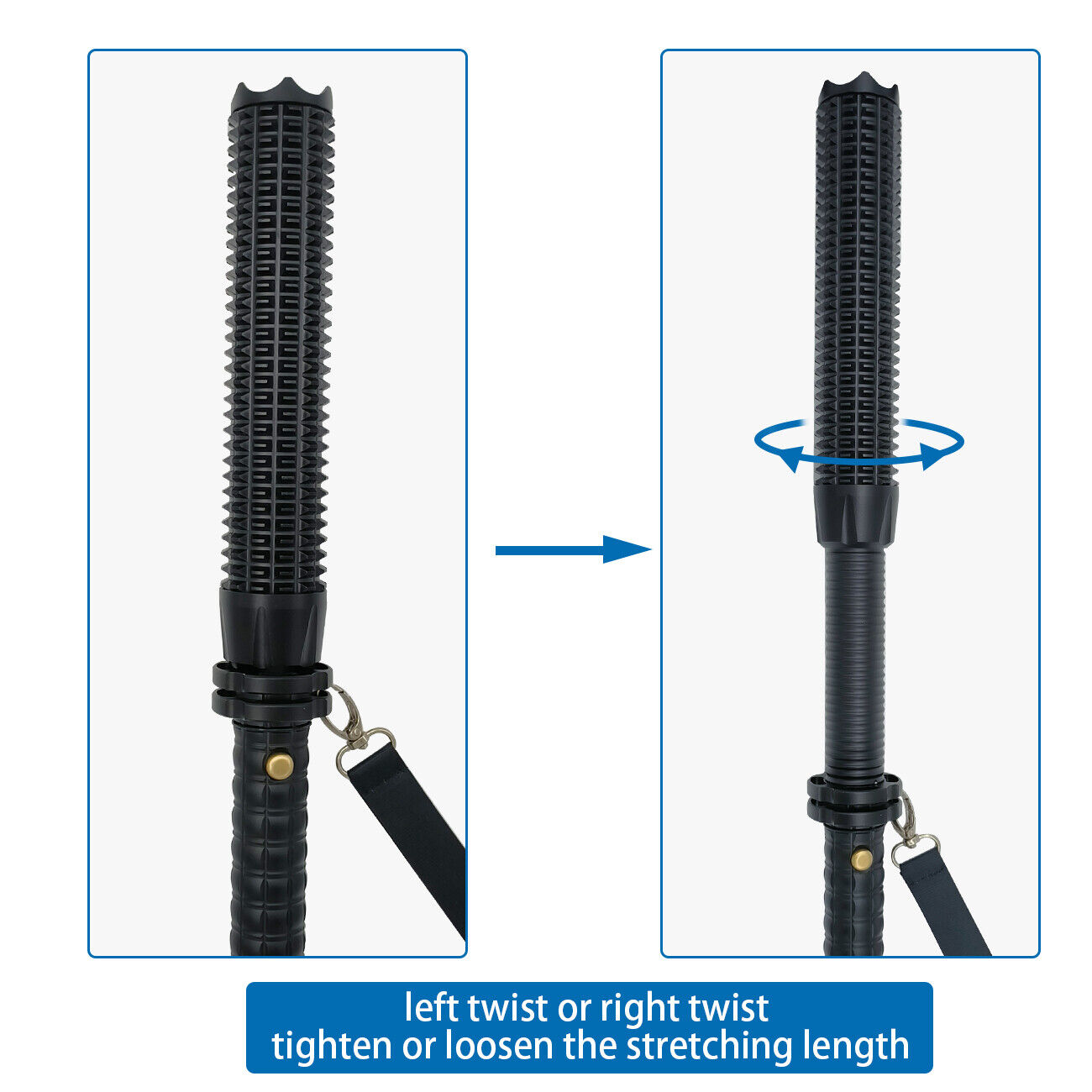 This rechargeable LED flashlight features a telescopic zoom function for adjustable lighting, making it suitable for various outdoor and emergency situations. It includes a life-saving hammer with a lotus-shaped head for protection and emergency escape, and is designed to be water-resistant for use in rain, snow, or wet conditions. Its durable construction and multiple modes make it a versatile tool for security, camping, hiking, and outdoor activities.