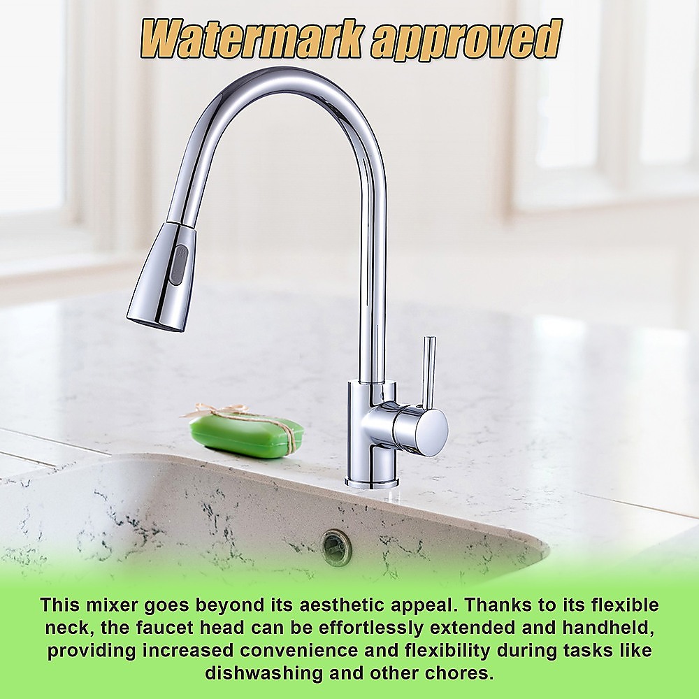 This basin mixer features a pull-down design that offers enhanced convenience and flexibility for kitchen, laundry, or bathroom sinks. Its stylish appearance and functional features make it a practical addition to any space.