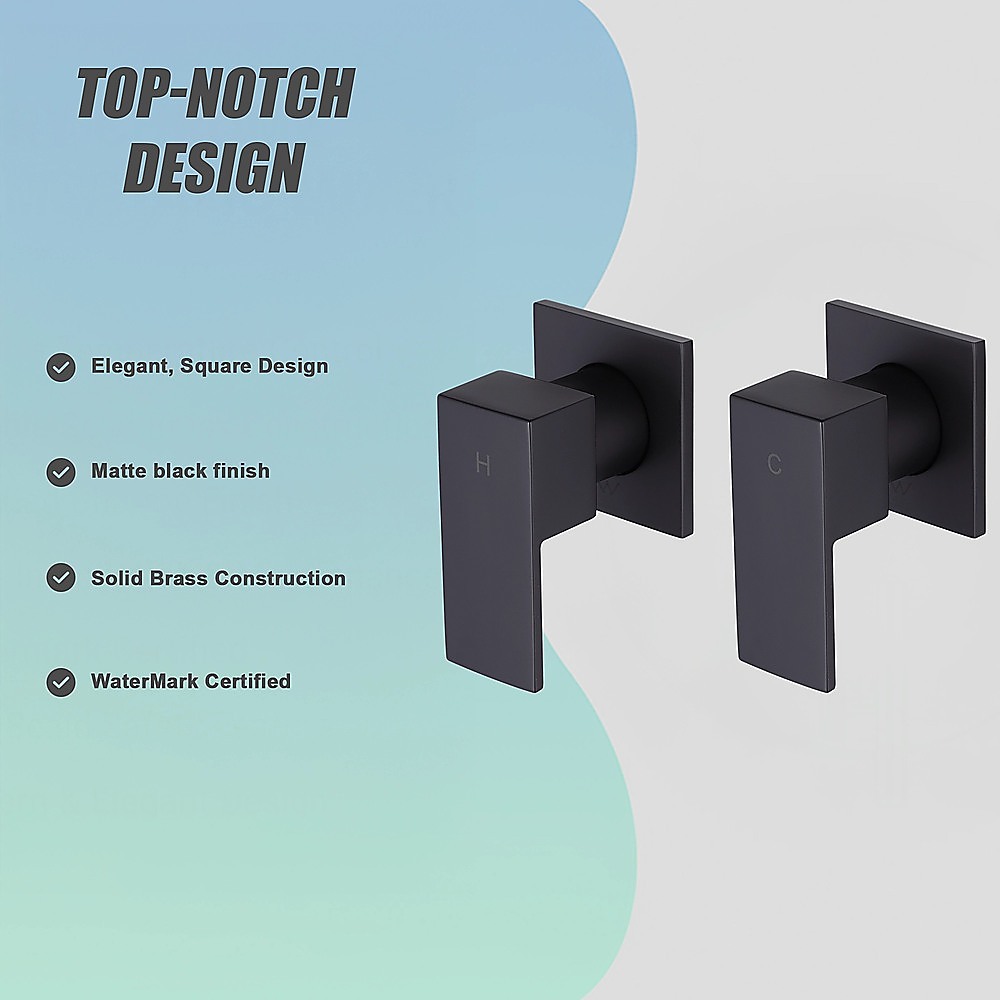 Bathroom Shower Bath Hot and Cold Square Mixer WATERMARK Certified in Black
