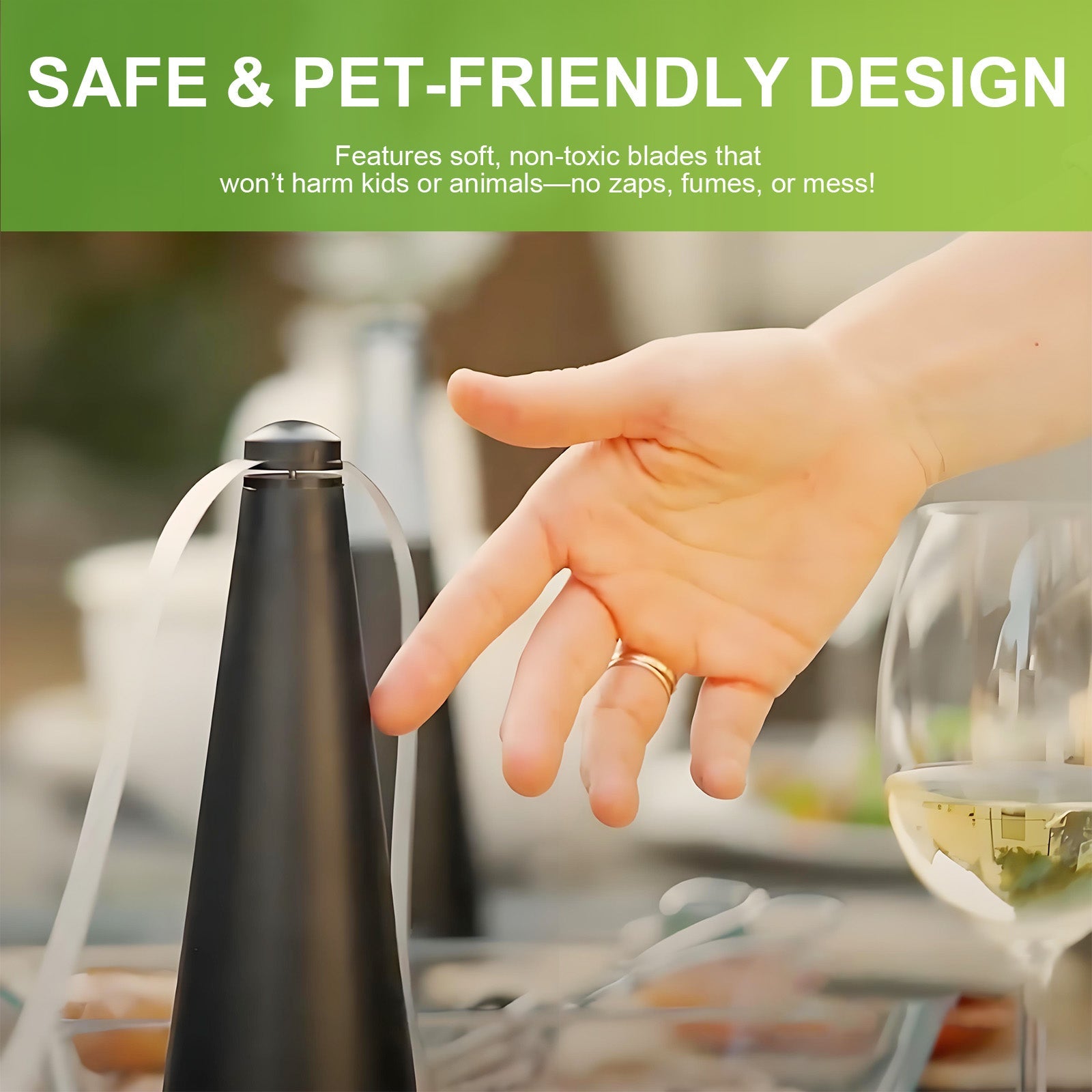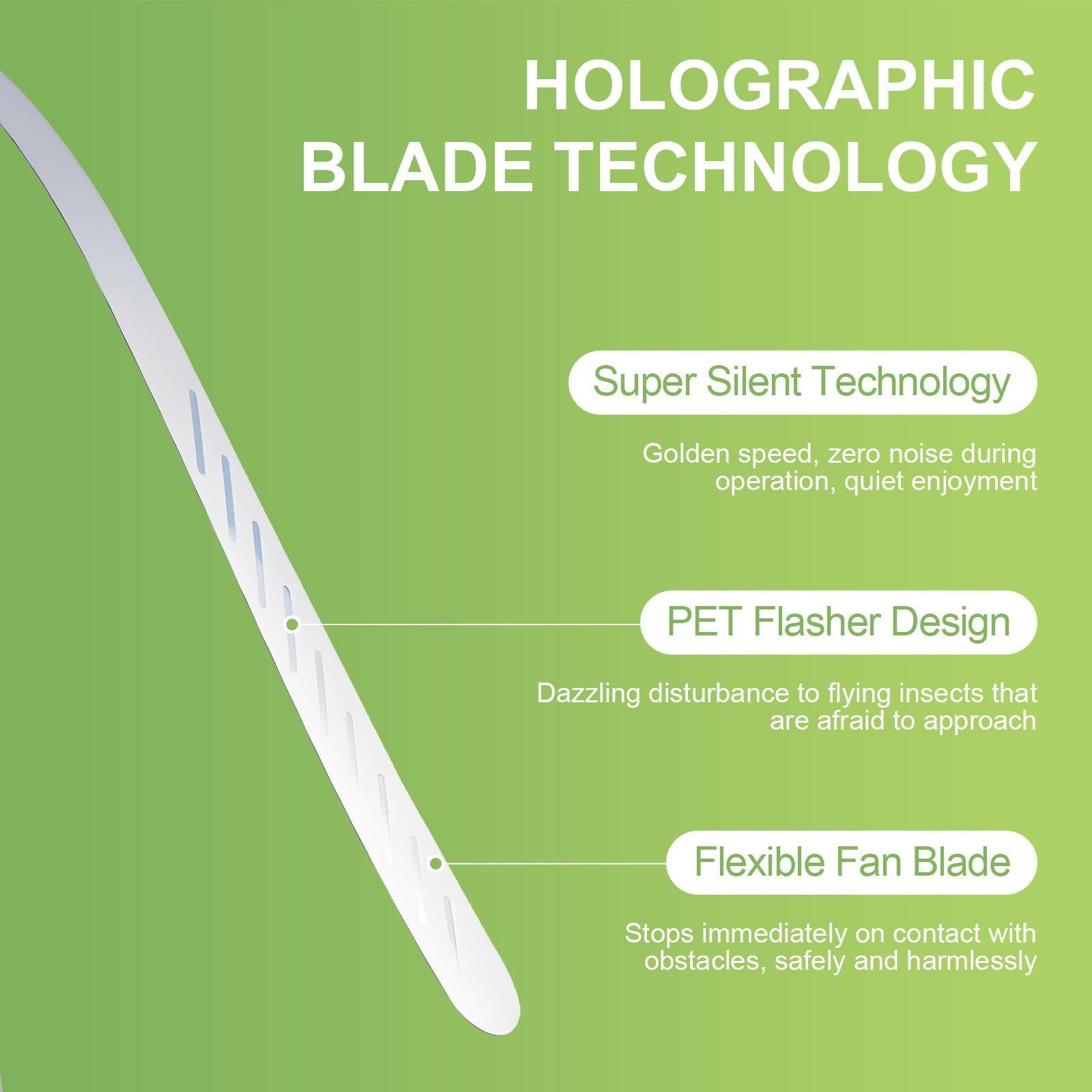 This battery-operated fly repellent fan provides an effective and chemical-free solution for outdoor insect control. Its holographic blades diffuse light to simulate a threat to flying insects, helping to keep your outdoor space free of flies. The soft blades are safe for humans and pets, making it a convenient and safe choice for outdoor activities.