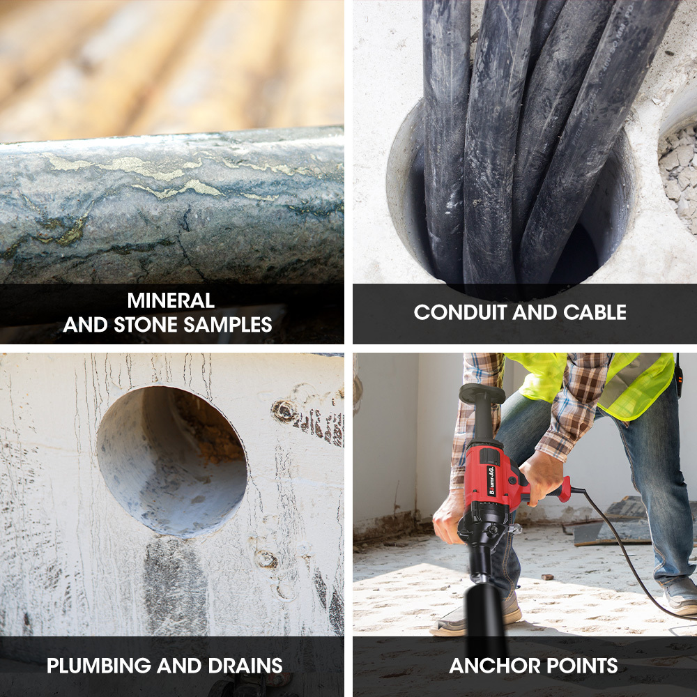 - Maximum drilling diameter of 160mm suitable for reinforced concrete, brick, and granite