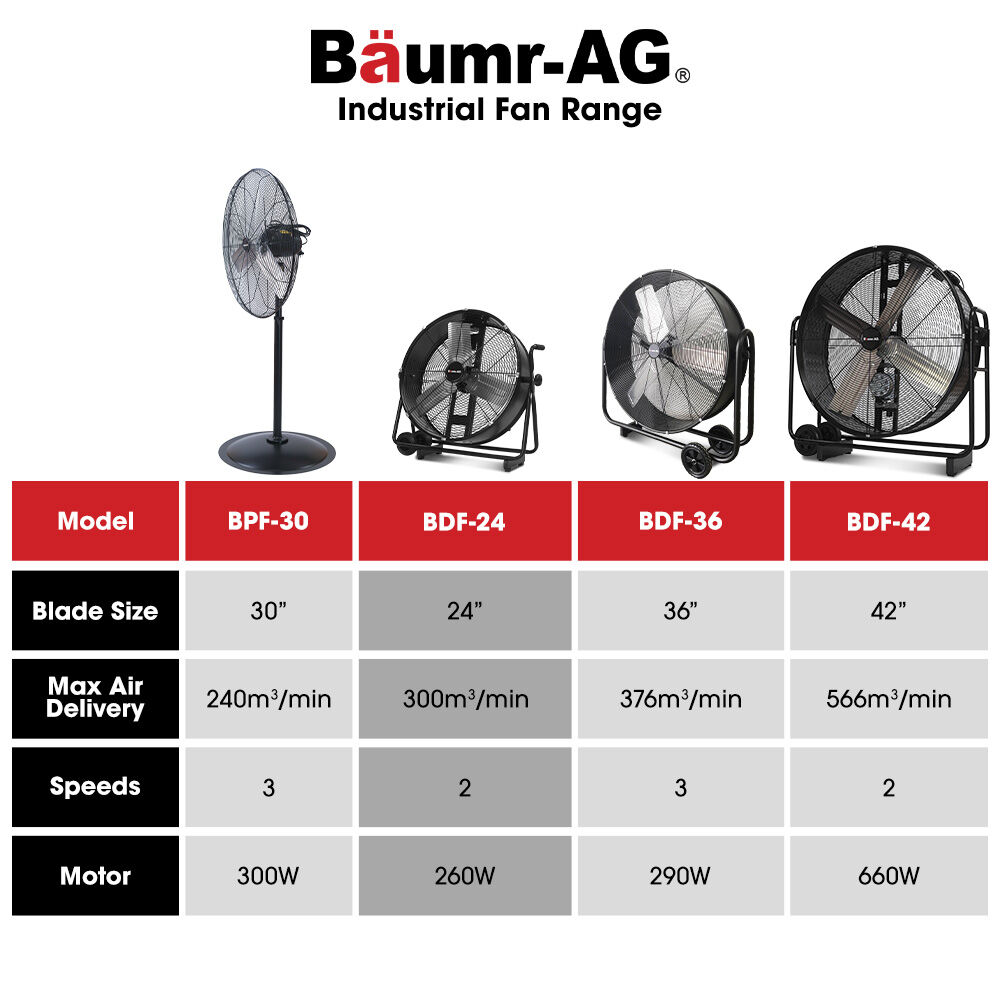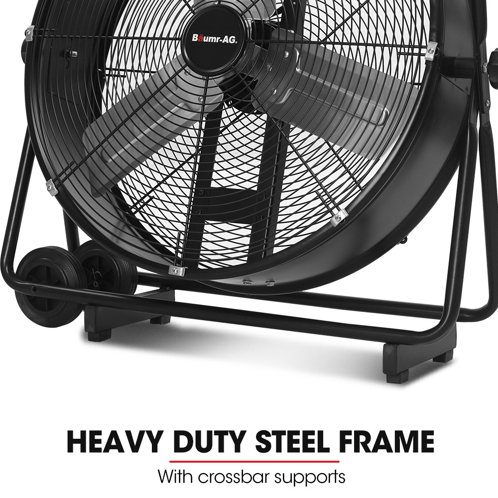 BAUMR-AG 24″ 610mm 260W Industrial Mobile Floor Drum Fan, Tilting, Large, Commercial, Heavy-duty Frame, EESS Certified